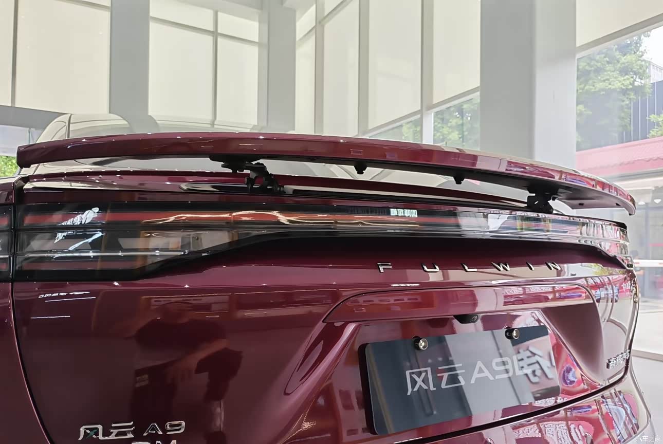 第一次看到风云A9L,它俯冲式的封闭前脸一下就抓住了我的眼球,宛如一只蓄势待发的猎豹 ,运动感拉满。两侧上扬的矩阵式LED大灯,就像猎豹犀利的双眼,内嵌的双横幅日行灯与纤细的贯穿式灯带相连,夜晚点亮时,辨识度爆表 ,仿佛自带主角光环。保险杠两侧三角形导风槽,不仅优化了空气动力学性能,獠牙状镀铬饰条更是为其增添了几分凶狠劲儿 ,配合引擎盖上隆起的筋线,满满的进攻性。 车身侧面,那流畅的线条勾勒出标准的中大型轿跑比例,5018mm的车长、1965mm的宽体设计,还有仅1500mm的车高,低趴的姿态营造出强烈的运动感 ,仿佛在赛道上飞驰。3000mm的超长轴距,不仅保障了内部宽敞的空间,还让车身线条更加舒展。溜背线条从B柱优雅地延伸至车尾,与可电动升降的尾翼完美融合,不仅符合当下的审美潮流,还能在高速行驶时提供更好的稳定性 。半隐藏式门把手,既降低了风阻,又提升了整车的科技感 ,每次伸手开门,都有一种开启未来座驾的仪式感。20英寸密辐式合金轮毂,造型独特,搭配红色制动卡钳,运动气息扑面而来,开在路上回头率超高。 车尾部分同样精彩,双横幅贯穿式尾灯采用立体悬浮设计,内部灯腔结构精致复杂,点亮后犹如璀璨的星辰 ,与前脸的灯带相呼应,形成独特的视觉标识。后保险杠造型与前脸相呼应,底部扩散器装饰和镀铬排气口(实际为隐藏式排气),进一步提升了整车的高级感 ,让车尾看起来更加饱满、富有层次感。