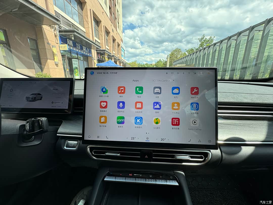 内饰方面我比较满意的是那个木纹装饰条,显得很有档次,晚上的时候还有氛围灯,超大的中控屏幕,实体按键在行车的时候更精准一些,不用在屏幕上点来点去,