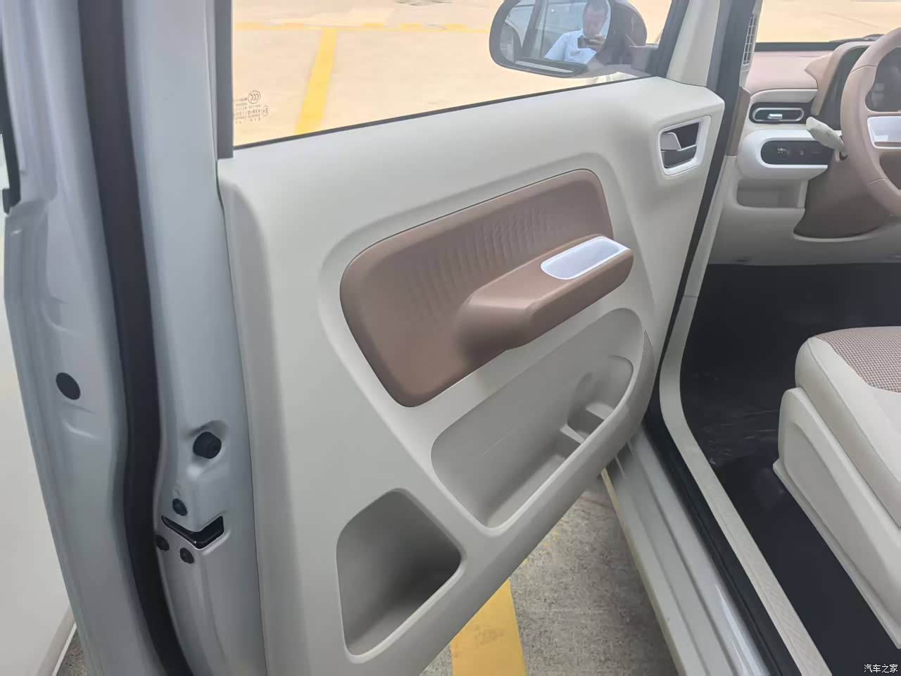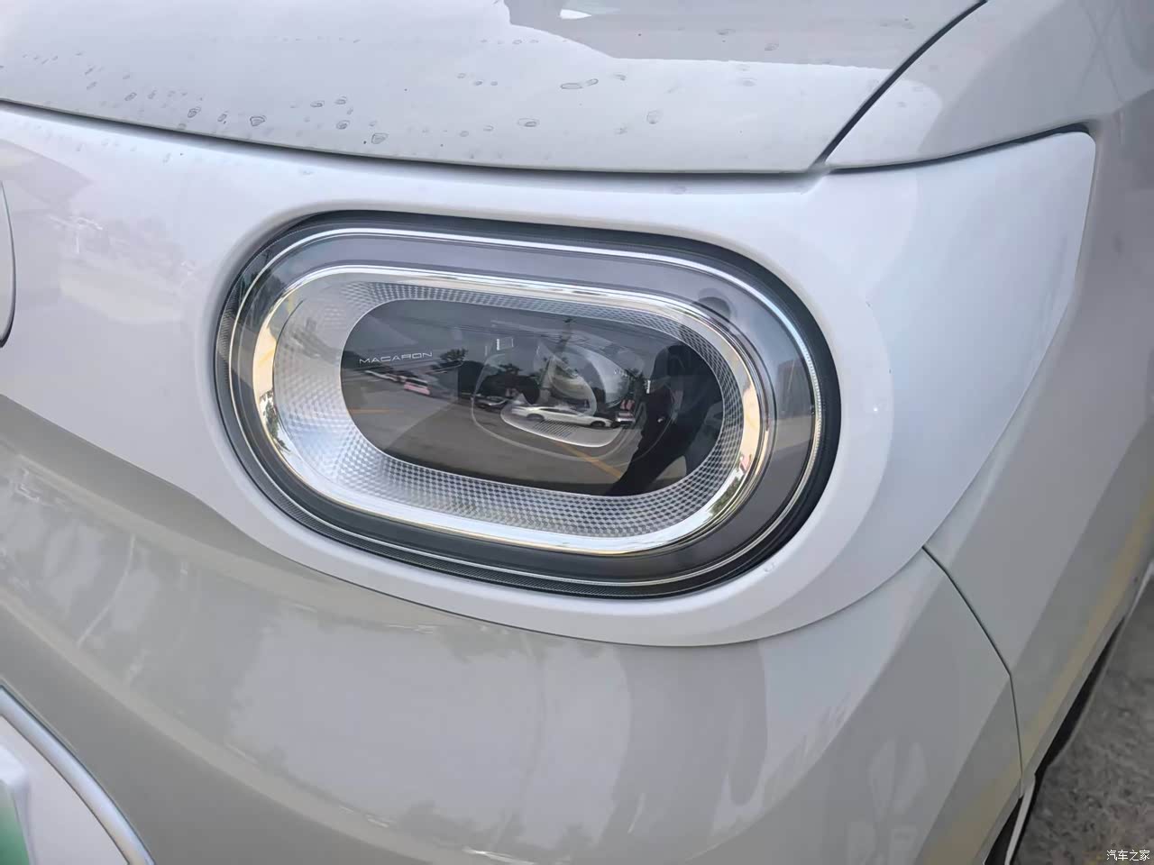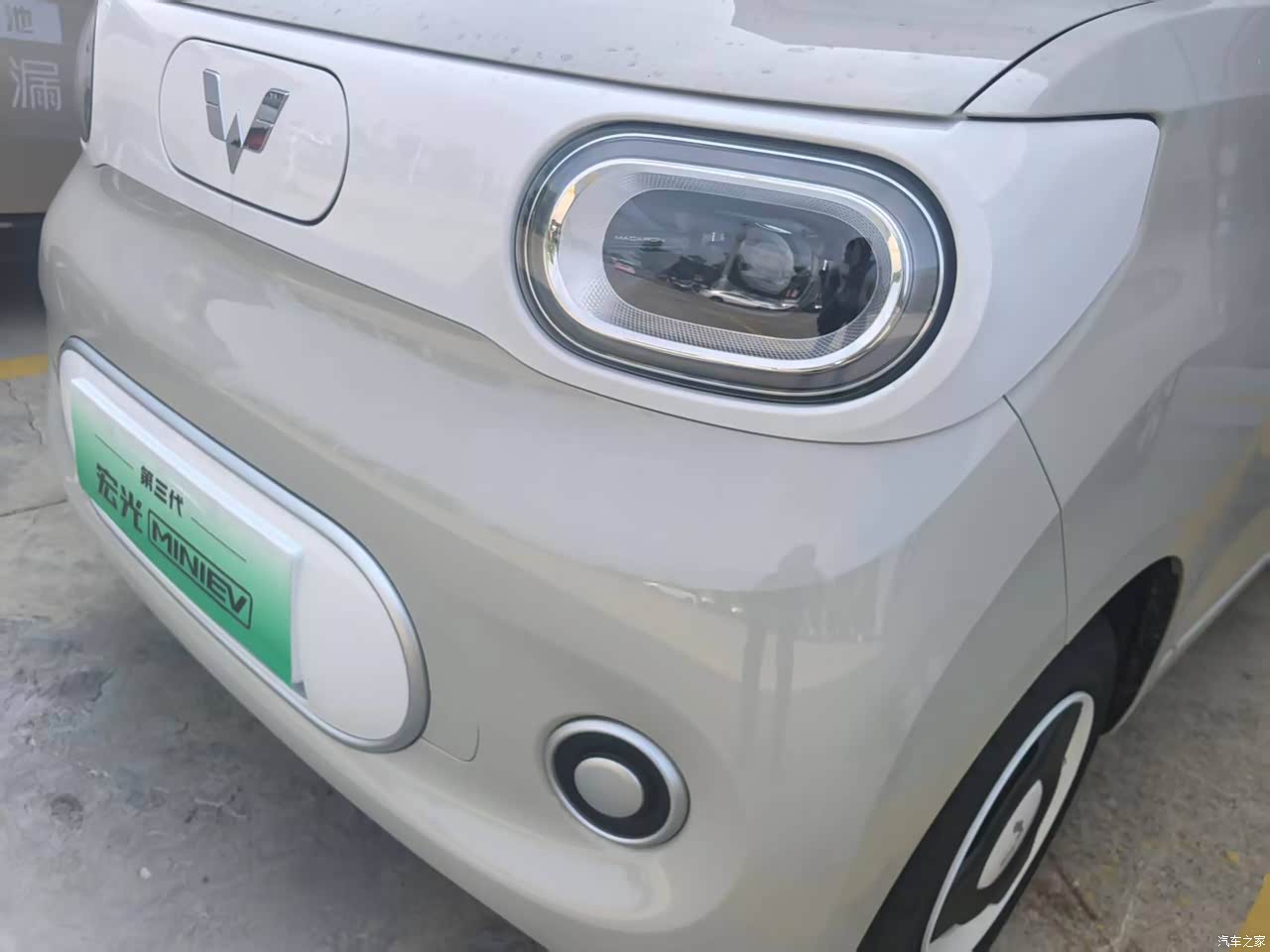 整个车的外观造型是比较那种方正的,我选择的是奶呼呼的颜色,看起来很干净,车的前大灯和后尾灯都是圆圆的造型比较可爱,加上轮毂的风格也是属于那种复古的风格,适合女性来开。