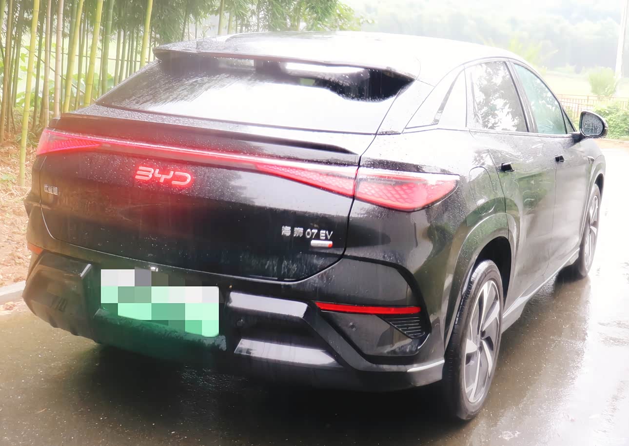 最满意的就是这车子的外观了,简直长在了我的审美点上。第一次在4S店看到它,我就被吸引住了。前脸的设计特别有个性,悬浮式的大灯就像一双炯炯有神的眼睛,特别有神采,辨识度超高,在路上开着,老远就能被认出来。 车身侧面的线条太漂亮了,溜背的造型特别流畅,从车头一直延伸到车尾,勾勒出很有力量感的轮廓,看起来动感十足,就像一头蓄势待发的海狮,特别有气势。轮毂的设计也很有特色,和车身搭配得很协调,转动起来的时候,还有种独特的韵律感。 车尾的设计也很出彩,贯穿式的尾灯是现在很流行的设计,但海狮07EV的尾灯造型更精致,晚上点亮之后,灯光的效果特别漂亮,层次感很强,而且尾灯的灯带很均匀,没有那种断断续续的感觉,看起来特别高级。 另外车身的比例整体很协调,看起来特别匀称,不像有些车要么显得头重脚轻,要么比例很奇怪。车漆的质感也很好,看起来特别干净、大气,而且光泽度很高,洗完车之后,在太阳底下闪闪发光,特别漂亮。车门把手是隐藏式的,关门之后和车身融为一体,看起来特别整洁,也降低了风阻,这个设计很巧妙。