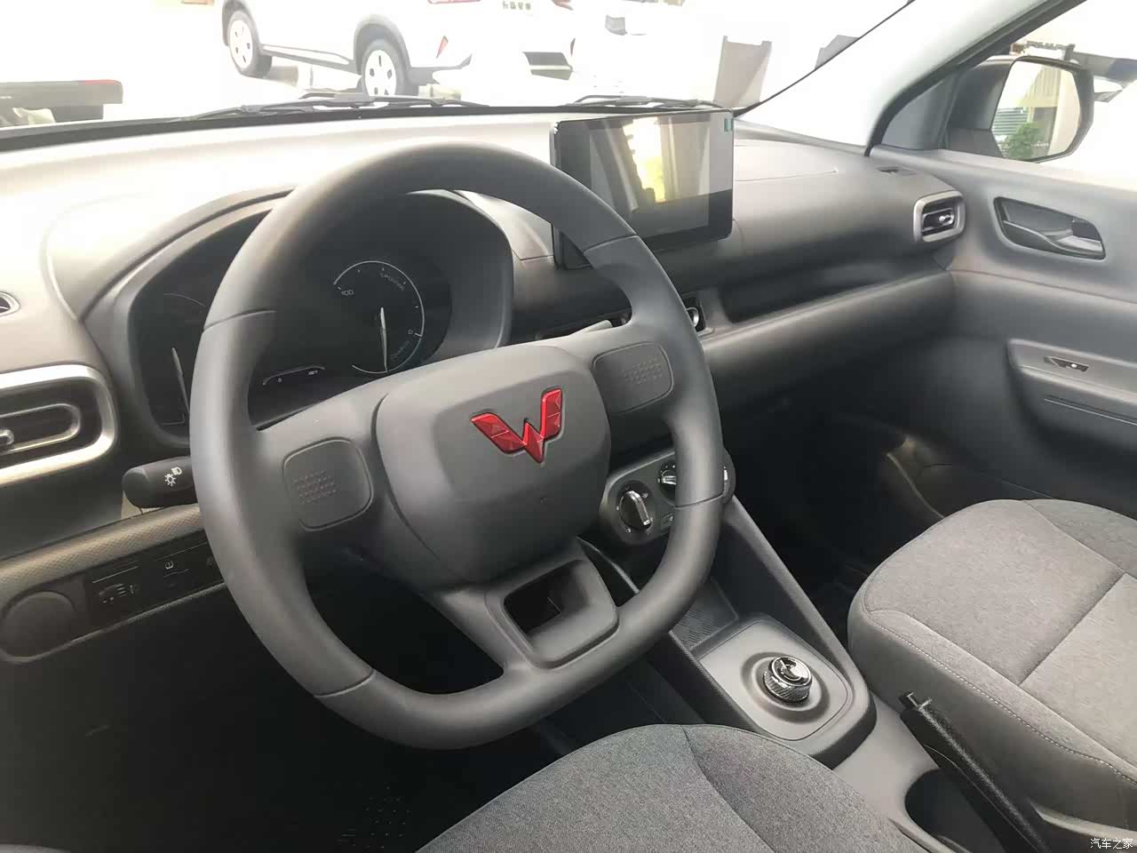 五菱之光EV设计风格朴素,中控台配备物理按键和旋钮,操作简单便捷。双辐式方向盘前方是单色液晶仪表,娱乐系统位于空调出风口上方,仅具备收音机功能。车内采用旋钮换挡,虽没有过多华丽装饰,但胜在整洁实用。