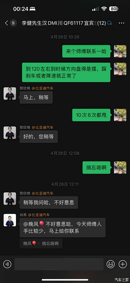 1: 这是提车当天,看了时间提车,还有20分钟左右,检查到车有问题,(需要拆前杠,换中网解决)销售给我说让我先提车,开出去在来回来解决,直到现在没有人理会,脚垫也是提车的时候给我说没到,等了1个多月,送的发动机护板到现在为止还是没有任何消息 2:几百公里后踩刹车异响 3:跑高速上了110抖得你手发麻,把车放店里师傅给我打电话说打了动平衡,说没问题让我在开,但是开了一千公里了不抖了😓 4:车门又异响来了 5:好家伙内后视镜又出现脱成 这是用车3个月的感受,车质量你们觉得怎么样我就不说了,主要到现在为止就得到售前一句话,车提走了只能找售后,请问如果是你们会是什么感受,买比亚迪就是因为我也想找个靠谱的售后,可是这是什么品牌服务?
