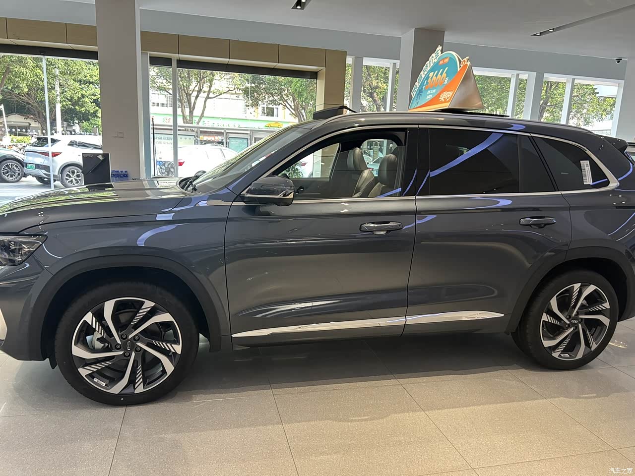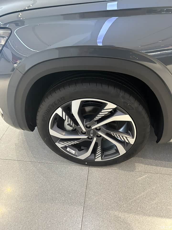 外观颜值在线,不管是正面还是侧面都做的很好看,我是挑不出毛病的,尤其是侧面下包围那个镀铬饰条让车瞬间就高级了不少。再一点星越L顶配的轮毂就很大,不需要额外花钱再选装了。比例设计的很协调,又运动年轻又觉得高级。