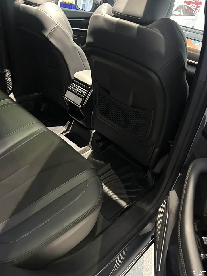储物空间和乘坐空间都很大。先说储物空间,两侧门板和扶手箱就已经能放很多东西了,手机也可以无线充电有地方放置。后排主要是靠前排座椅背部的网兜,拉力大比皮质兜好用。乘坐空间相当不错,我和老婆一起去看的,168cm身高后排头部两拳,腿部可以达到三拳,妥妥的一个大Suv。后备箱开口宽敞,地台也不算太高,放置行李箱的时候很方便。