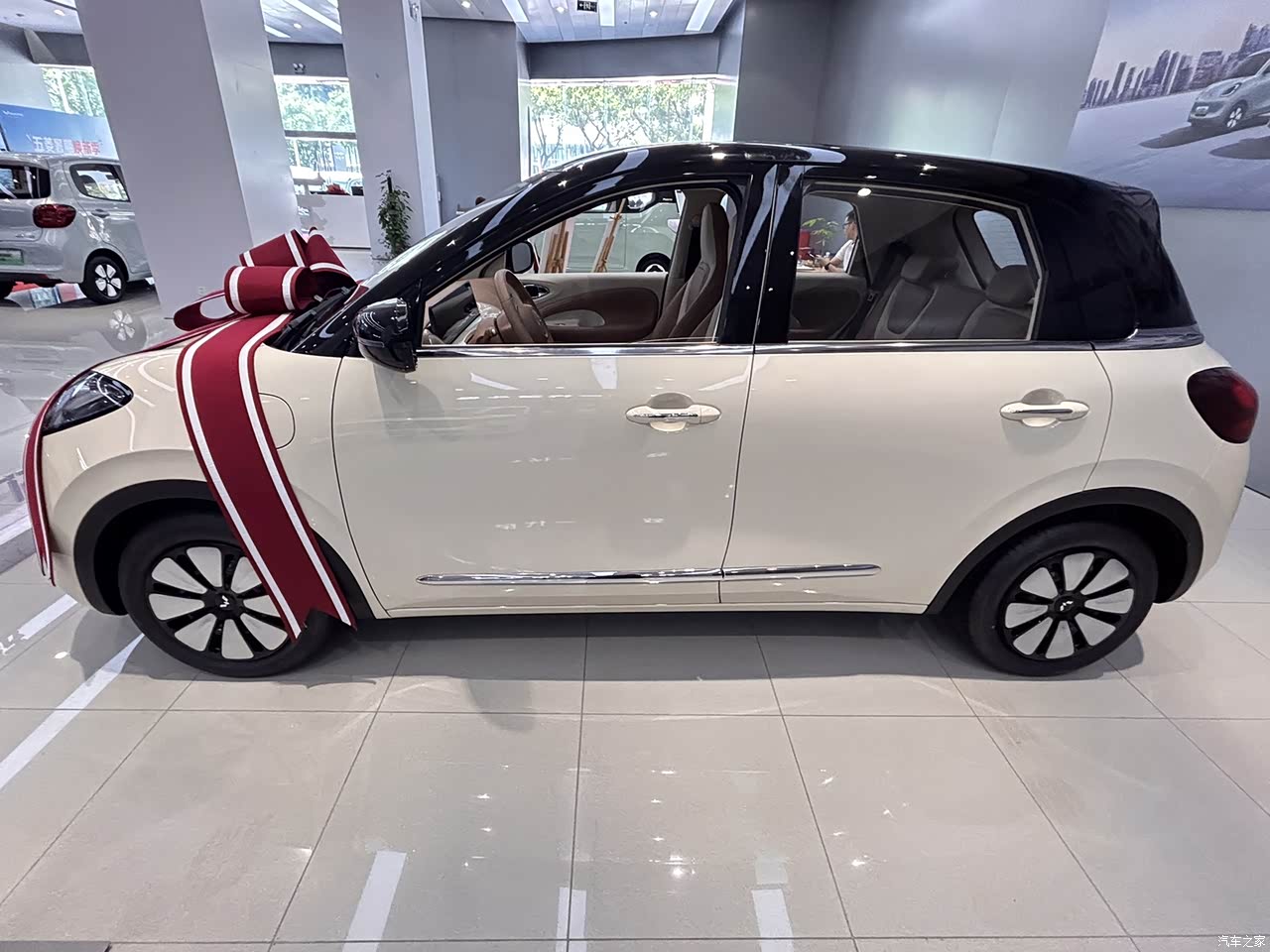 外观上这个车真的是无敌的存在,小巧圆润没有攻击性,就连轮毂都是超萌的设计,好多马卡龙配色让人都选不过来。今天看的这款车是撞色设计,再加上镀铬条,小车也做出了高级感。