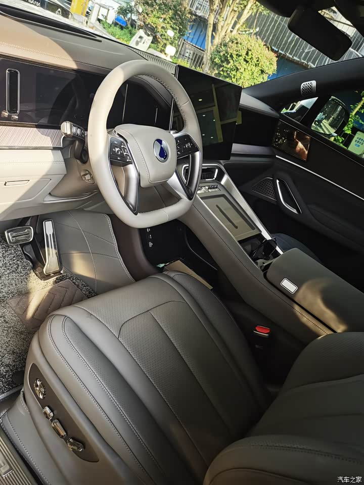 N9是个大块头,5米多长,车重超过三吨。搭配2.0发动机加前后三电机,发动机可以参与驱动,最大马力接近千匹,竞速模式下来到了3秒级。整个动力的输出会给你带来一定的激情,但并不会感到特别的暴躁,这一点个人觉得非常重要。刹车和起步由于云辇系统的加持,不会出现特别明显的抬头或前倾。车上有家人和孩子的时候,我会调节到舒适模式,这时车的转向会非常的轻柔,整个底盘的调教风格也就以偏舒适为主。经过一些起伏路和坡的时候也不会有开大船晃晃悠悠的感觉,避震可以很迅速的把车身拉住,不会有一些多余的晃动。个人开的时候我还是喜欢运动模式,运动模式下给舒适会有一个性格上的差别,方向会变重,底盘所传递上的路感会更清晰,会明显感觉到底盘的紧实。在侧倾的时候,座椅的侧翼包裹也会来的更迅速。 总结一句话:大家伙,很灵活,驾驶有乐趣。