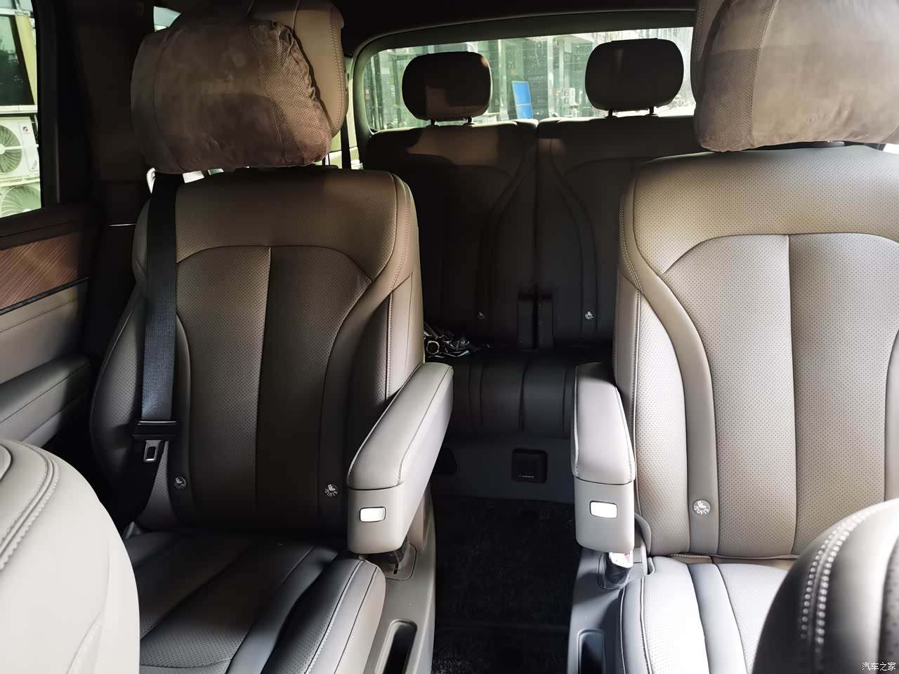 5米二的车长,两米以上的车宽,大六座布局,车内空间自然是绰绰有余。我一米八的身高,正常驾驶位置,头部空间有两拳以上。二排两张左右新增了左右横移的联动调节,两张座椅可向内靠拢,使左右座位紧贴在一起。座椅向外可留出中央通道,方便第三排乘客通过。中央扶手后面是车载冰箱,支持-6度到50度的温度调节。二排座椅前方有两个小桌板,同样配置了两个手机快充槽,二三排都配备了遮阳帘。N9的三排空间同样让人惊艳,支持坐垫前后靠背前后调节,高配支持六项调节,支持座椅加热,扶手非常的宽大。N9的另一大惊喜就是它这么灵活多变的座椅调节方式就给它带来了整个车内联动的一个百变空间,车机里就有:前排影院,后排大床,四人舒享,满员出行四种预设模式,也可以根据自己的喜好设置座椅布局。