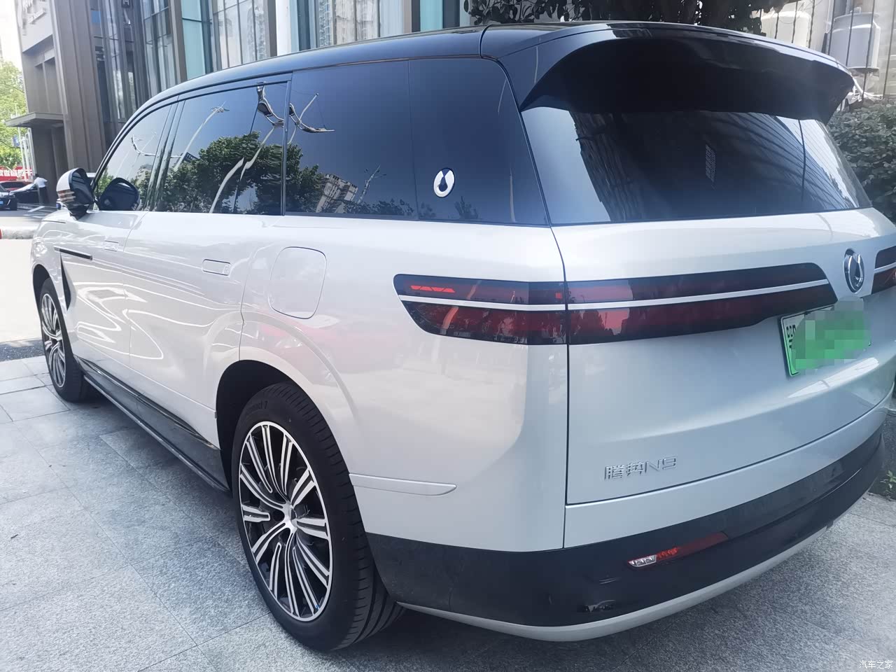 这台车给人的第一印象就是非常大,气场特别的足。车身尺寸分别是:长5258mm宽2030mm高1830mm,轴距更是达到了3125mm。整个车身的线条也特别的笔直硬朗,而且能在车身的各个角度不同的细节也能够彰显出这种沉稳大气。前脸顶天立地设计理念,干净利索,并没有过多的图案和线条。这点也是我个人比较喜欢的。车身侧面同样是比较简洁大气的设计,车窗和车身1:2黄金比例设计,会显的比较协调。再搭配上22寸的轮毂。六活塞黄色卡钳,稳重又不失动感。车尾同样采用比较简洁的设计风格,分体式的尾灯,中间是腾势的logo。有别于现在新能源烂大街贯穿式尾灯。