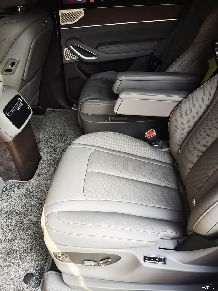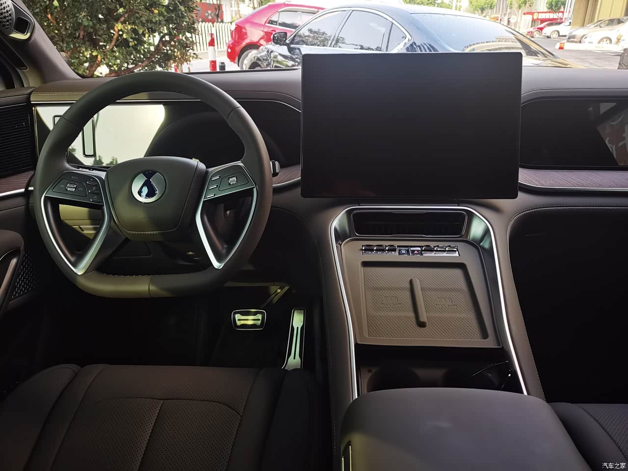 这个价位了,N9的内饰也是展现了作为一款科技豪华suv应有的配置。整体的内饰布局和风格还是和z9与z9gt都比较像的,液晶仪表,中控大屏,副驾驶娱乐屏,后排娱乐屏,全车帝瓦雷音响,常用的功能都做了水晶的实体按键。车内的用料也算同样非常的讲究,门板上是全实木的木纹饰板,全车几乎都是采用皮质包裹。前排储物空间也是非常丰富,中控台前方两个50瓦无线快充,扶手箱下位前排冰箱。冰箱彩电大沙发都给足了。宽厚的真皮座椅支持加热通风按摩多项调节。