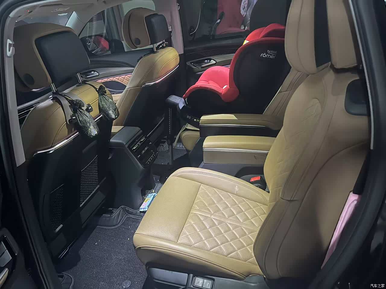 内饰不管是做工还是用料,个人感觉都是非常扎实的,前排科技慢慢,最喜欢的是仪表台配实木装饰,门板上也有实木装饰,每一处细节都在刷新豪华 SUV 的天花板!真皮座椅坐上就舒服!!