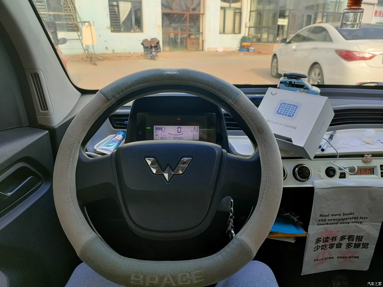 我的MINIEV内饰以简洁明快为主,中央控制台采用了深浅两种颜色的拼接,营造出丰富的层次感。方向盘具有出色的防滑性能,电子旋钮换挡也很节省中控空间同时也提高了操作的便利性,我觉得这个旋钮换挡最好,深得我心。座椅是织物材质包裹具有透气性。
