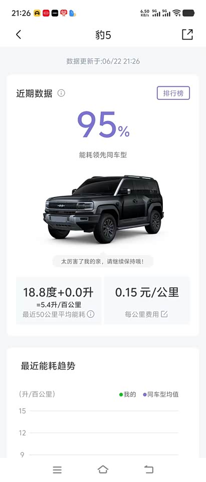 日常市区通勤,单位有快充桩,基本上夏季三周充电两次,冬季5天充一次,只要脚法好你能领先全国,能耗图片是车友的截图。但我不一样,我开车比较激进,我只能领先全国百分之30的车友😁,至于续航里程和电耗我还真没仔细算过。