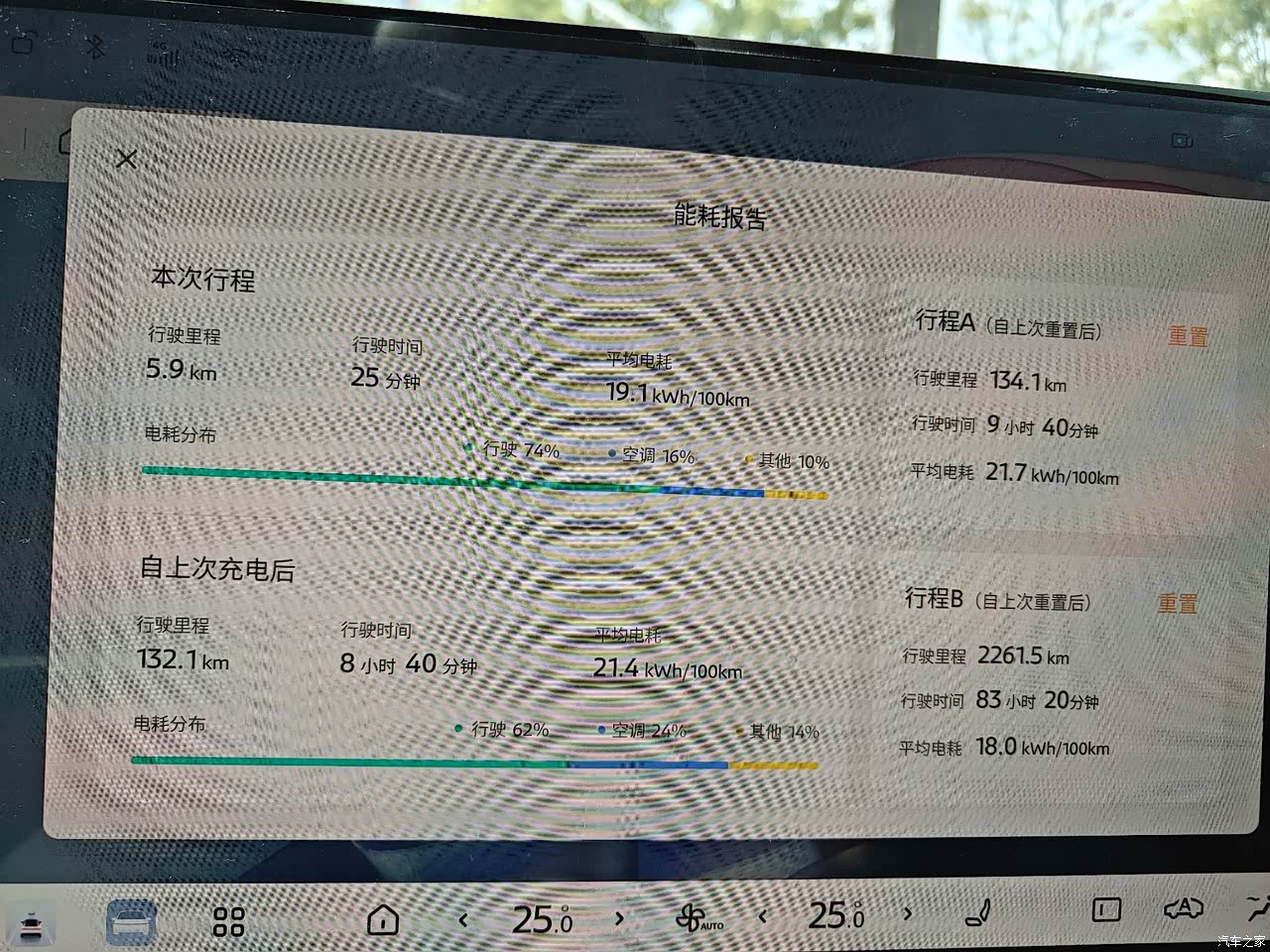 续航能耗 这个其实是有很多要说的 但简单来讲就是 纯市区短途拉胯 续航300多 长途及高速费话 大概450到500左右 因为没有跑到过趴窝 但一次行驶和450公里还是问题不大的 毕竟人也得休息不是 这个图里的行程A是每次充电重置 现在是里程是纯市区短途 几个红绿灯就停的那种 不含高架和快速那种