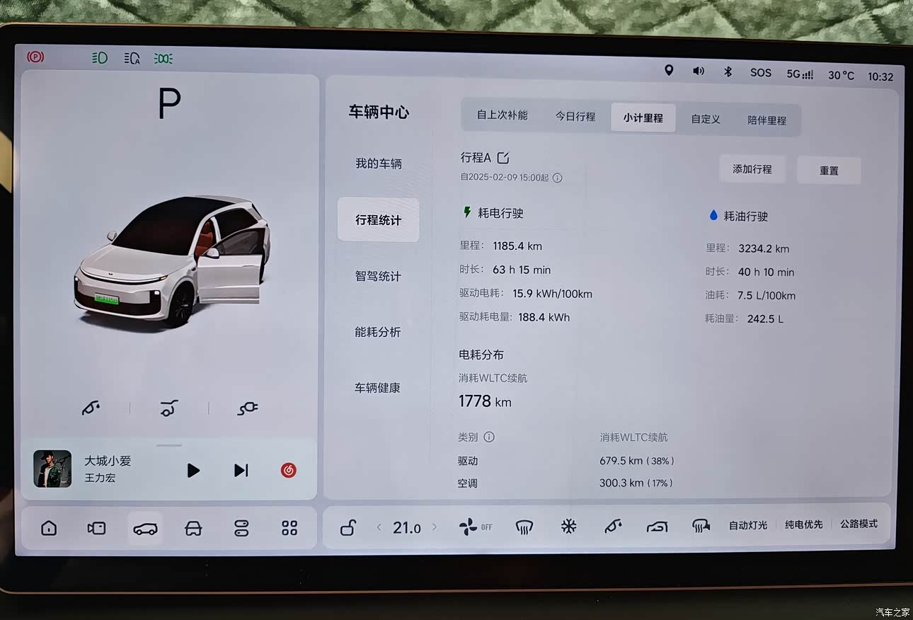 市区通勤使用纯电模式,夏天满电续航约175公里,冬天约140公里,平均驱动电耗15.9 kWh/100km 。长途出行设置为油电混合或燃油优先模式,平均油耗7.5L/100km ,满油满电综合能耗下续航里程可观,但纯电续航在冬季等场景下有所缩水。