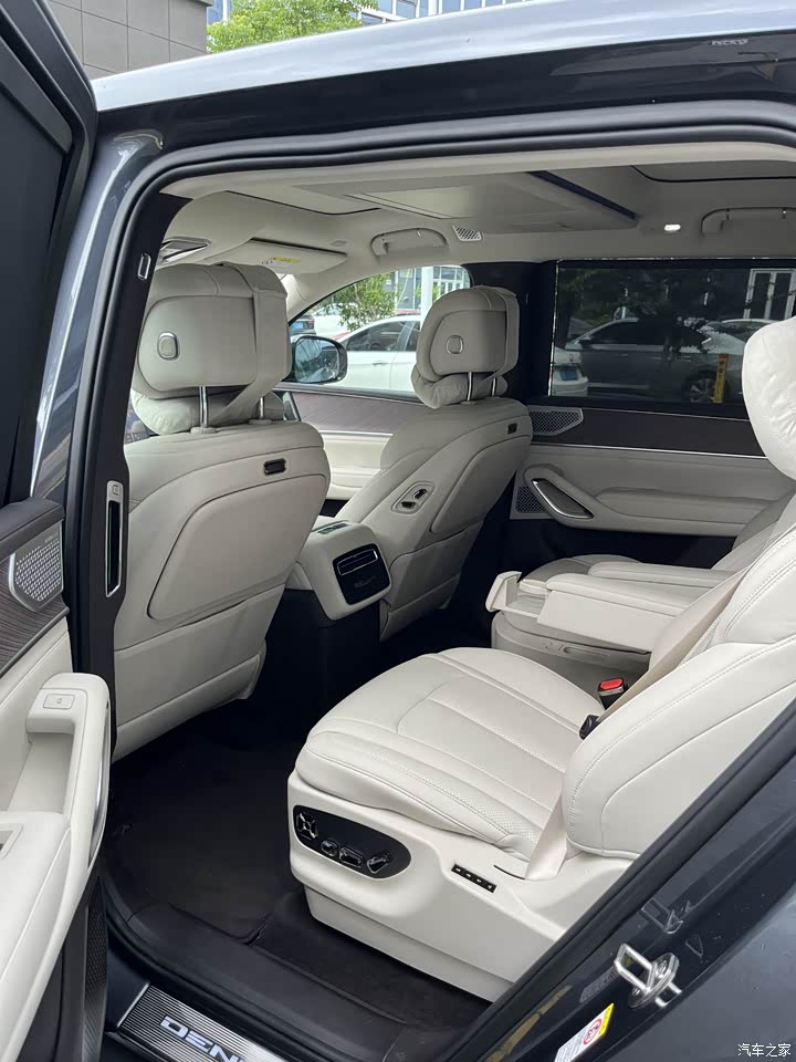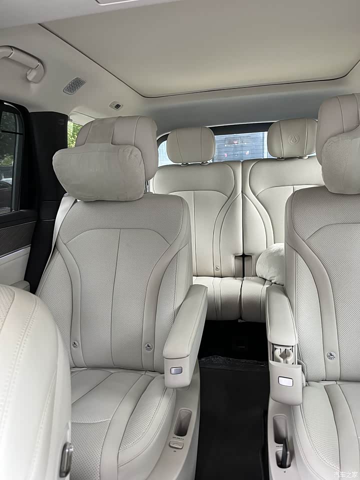 n9这个车是又大又长,这个空间是不用说的了,座椅很大又宽敞,成人坐在上面,头部腿部空间都很足,二排中间过道也很大,到第三排也很方便,第三排放倒下来的话,放个垫子也相当于大床了。车里还有很多储物空间。