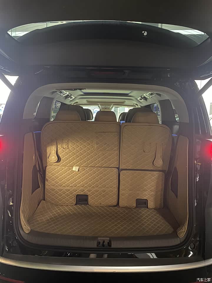 好开好坐,魔毯底盘是灵魂! 别被它的大块头唬住: 驾驶轻松不笨重: 方向盘轻盈精准,转弯半径比想象中小很多,有后轮转向加持的话(部分配置有)就更灵活了。城区掉头、地库停车,配合清晰的360全景影像+透明底盘,虽然车大,但上手没难度。动力输出平顺、安静,电机响应快,超车干脆利落,但调校偏向舒适,不会很窜,坐的人不晕车。 魔毯空气悬架(高配才有)YYDS! 这个配置如果选了,绝对是点睛之笔!过减速带、井盖、坑洼路面时,滤震效果太高级了!传到车里的颠簸非常柔和,车身姿态稳,晃晃悠悠就过去了,老人孩子坐着特别安稳。跑高速稳如老狗,隔绝感强,有种“坐船”但又不飘的感觉。 静谧性超棒: 双层隔音玻璃+优秀的NVH工程,关上车窗,市区嘈杂立刻安静下来。高速上主要是风噪(毕竟方盒子造型),但也在优秀水平,车内交谈、听音乐完全不受影响。