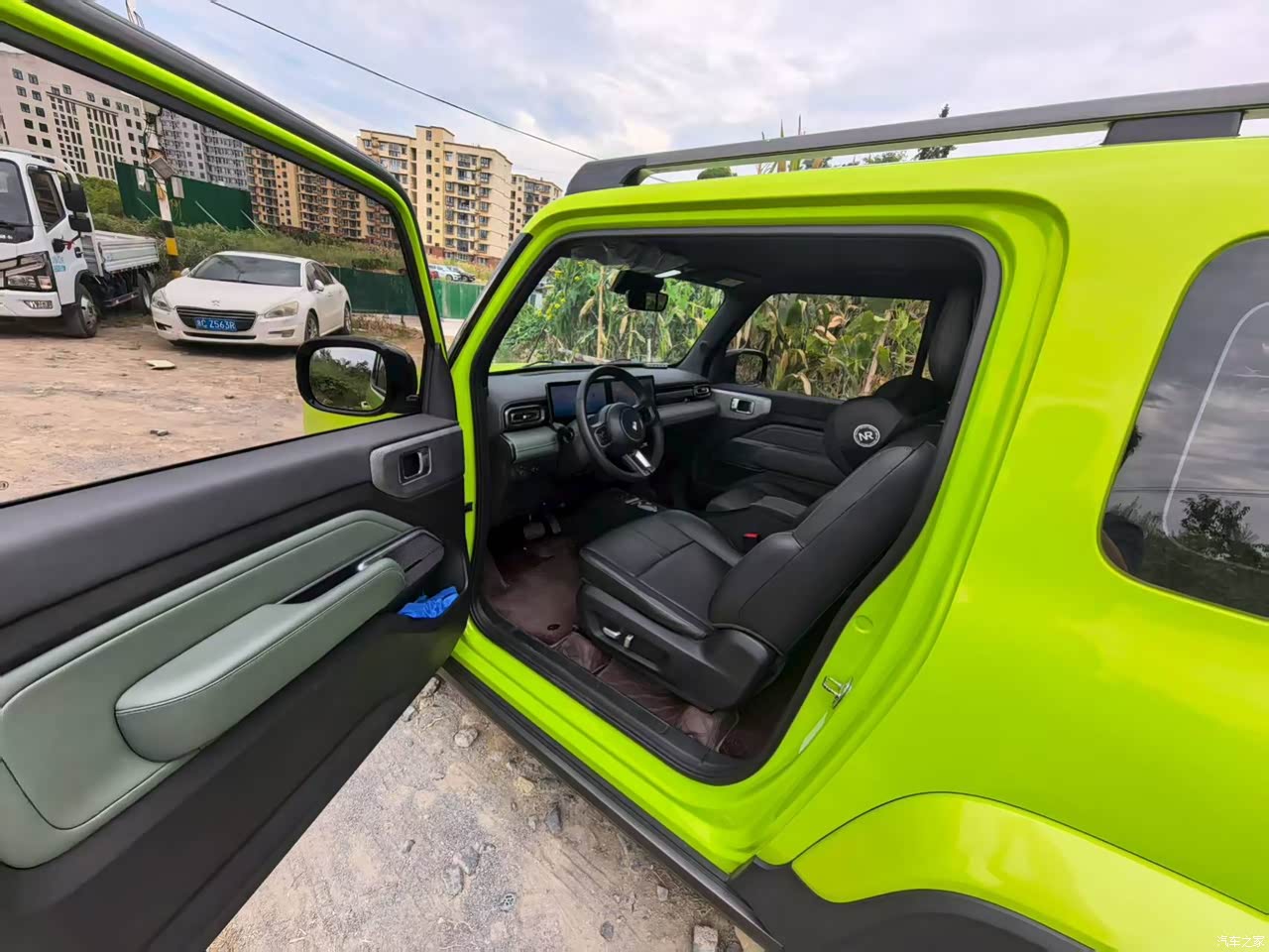外观:方盒子小硬汉,街头焦点制造机! 硬派复古,萌酷兼具:方方正正的“方盒子”造型是最大亮点!短小精悍的车身配上外扩的轮眉、高高的离地间隙(官方150mm+),活脱脱一个微型电动“吉姆尼”,硬派越野的范儿拿捏得死死的。 细节点睛:标志性的四横条幅封闭前格栅、圆角矩形LED大灯(旗舰版专属自动大灯很实用)、侧开尾门以及最吸睛的“小书包”设计(其实是装饰罩,可选装储物箱或屏幕),每一个细节都充满设计感和话题性。我选的“日出”橙色,开在路上回头率200%,等红灯经常被旁边车主摇窗询问! 尺寸优势:车长不到3.4米,轴距2.11米,城市穿梭、见缝插针、侧方停车简直不要太轻松,新手司机也能秒变停车高手。