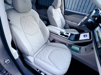 坐进车里第一感觉就是没什么刺鼻味道,用料应该挺环保。中控台和门板上大部分都是软包材质,摸起来软软的,手肘靠上去很舒服。座椅是仿皮,没有廉价的塑料味。