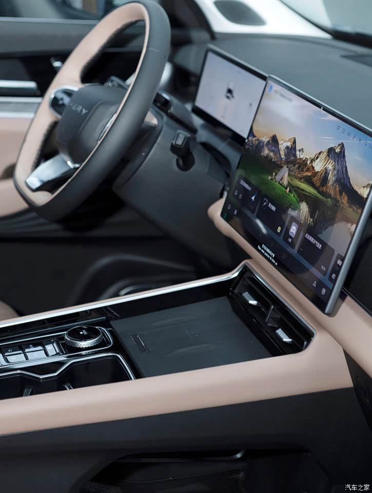 内饰:物超所值! 巨屏双联杀:10.25英寸仪表盘+15.6英寸2.5K中控屏,高通骁龙8155芯片流畅到飞起!语音喊“播放周杰伦”秒响应~ 头等舱配置:副驾“零重力座椅”一键躺平,通风加热,后排B柱独立空调,全家出行谁都不委屈! 细节控狂喜:磁吸钥匙槽、索尼14扬声音响、256色氛围灯,连门板按键都带木纹饰板,精致到抠脚!