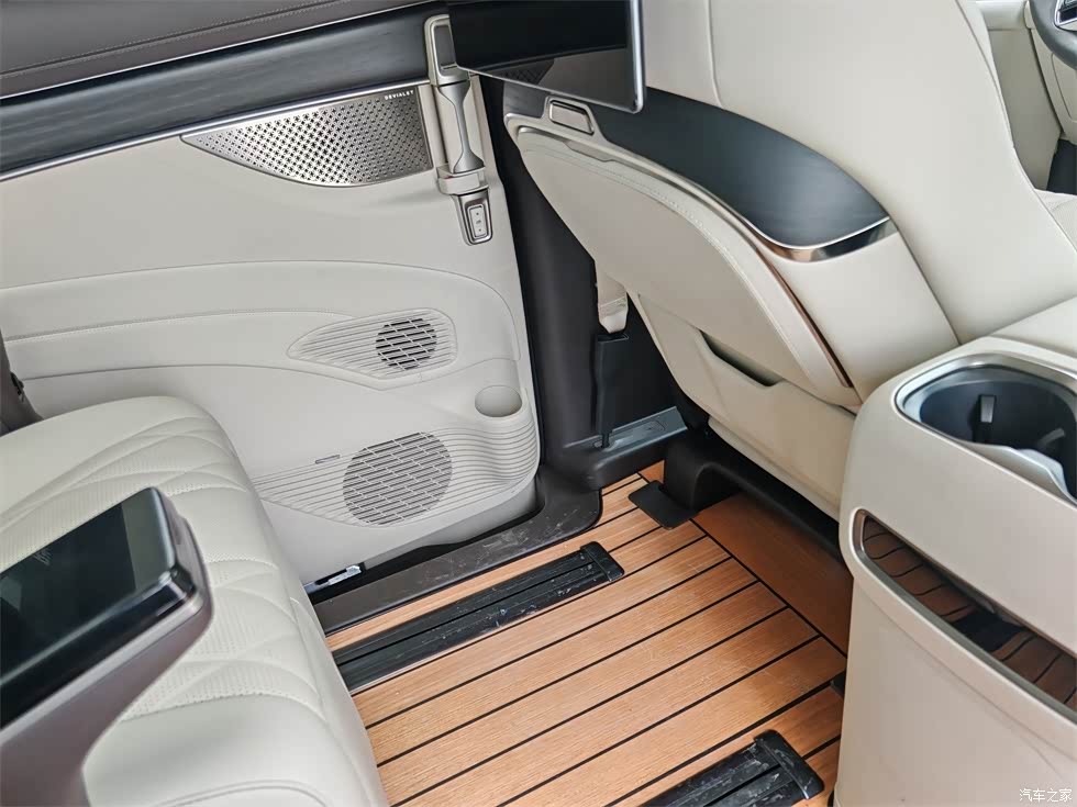 大空间带来了一些优势,但也有一些缺憾,比如会产生一些空旷感。所以需要在配置和布局上展示出来一种档次感,营造很好的氛围,这点D9是做的极好。它用非常多的软性包裹,有氛围灯,用不同颜色和材质的饰板,把座舱整体做出来一种VIP包厢的质感。