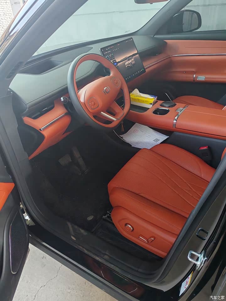 他内饰搭配这种爱马仕橙让人感觉怎么眼前一亮的感觉,看惯了传统的黑白灰内饰,看到这个橙色内饰就感觉很新颖,而且内饰用料在随处可见,可以摸到的地方都是软包,全是软的,没有塑料感