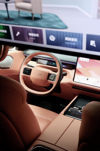 内饰这块确实是下功夫了,满满的豪华感。一坐进车里,30英寸6K一体式天际屏特别显眼,显示很清晰,操作也很流畅。