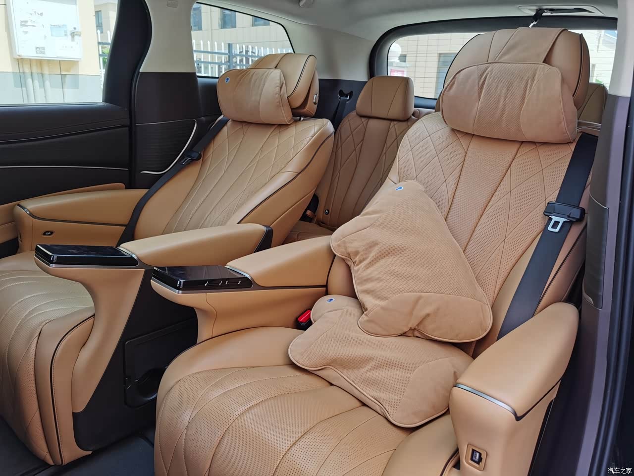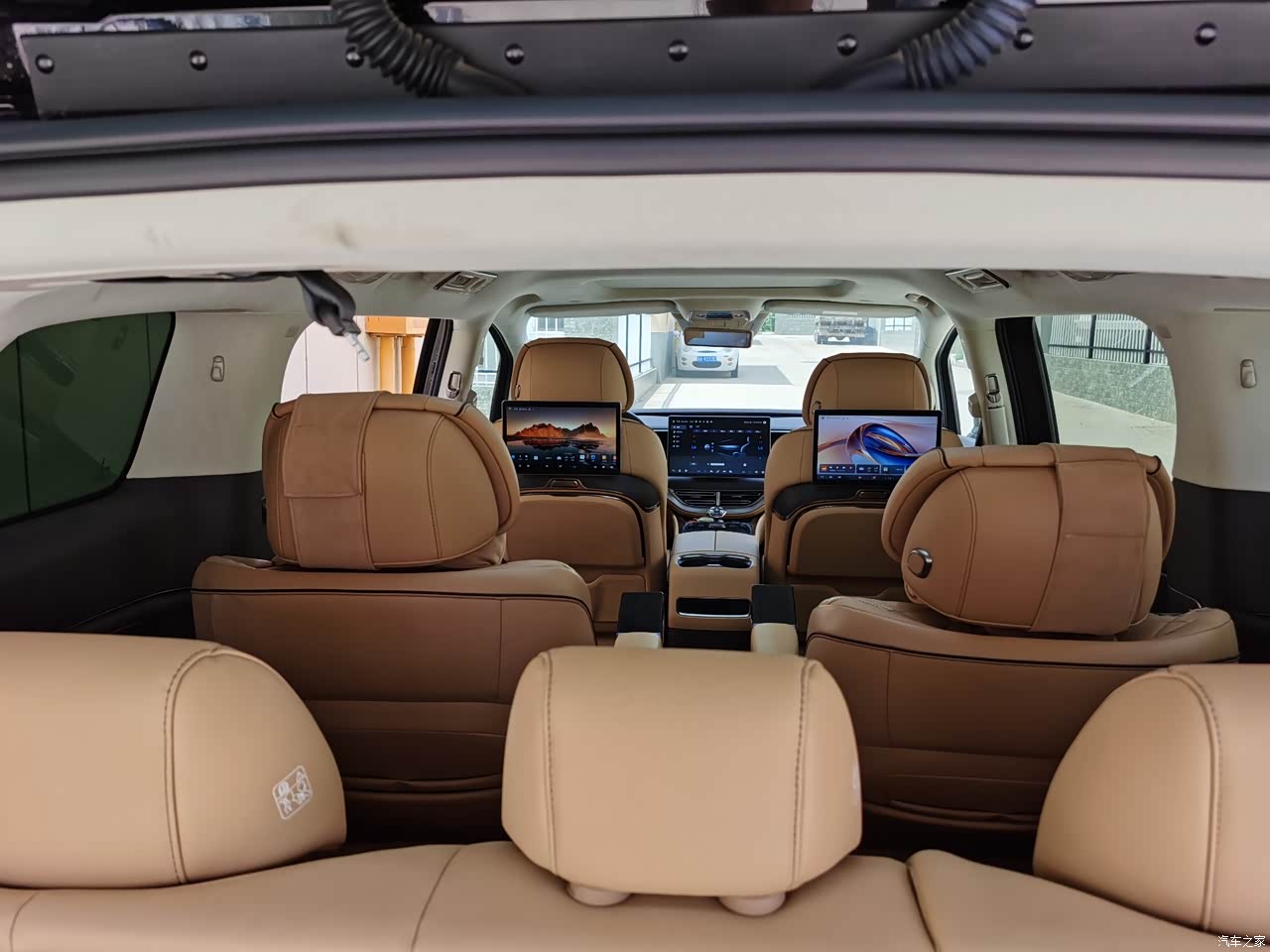 1. 二排头等舱,爽到不想下车 - 航空座椅带电动腿托+按摩+通风+加热,跑长途直接躺平,接客户人家一上车就夸“这比高铁一等座还舒服”。 - 小桌板+后排冷暖冰箱,夏天冰饮料、冬天热牛奶,带娃出门神器。 2. 三排能坐成年人,不憋屈 - 比GL8、奥德赛这些传统MPV第三排宽敞,1米75以下坐2小时没问题,短途全家出行够用。 - 座椅靠背能调角度,不像某些SUV第三排“坐小板凳”。 3. 后备箱够用,7座状态也能装 - 满员情况下,还能塞2个24寸行李箱+几个背包,短途旅行不用拆第三排。 - 第三排能4/6比例放倒,拉大件行李比SUV能装。 4. 储物空间多到用不完 - 门板、中控、座椅底下全是储物格,手机、钱包、零食随手放,扶手箱大到能塞5瓶矿泉水。