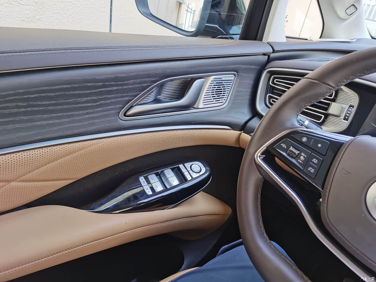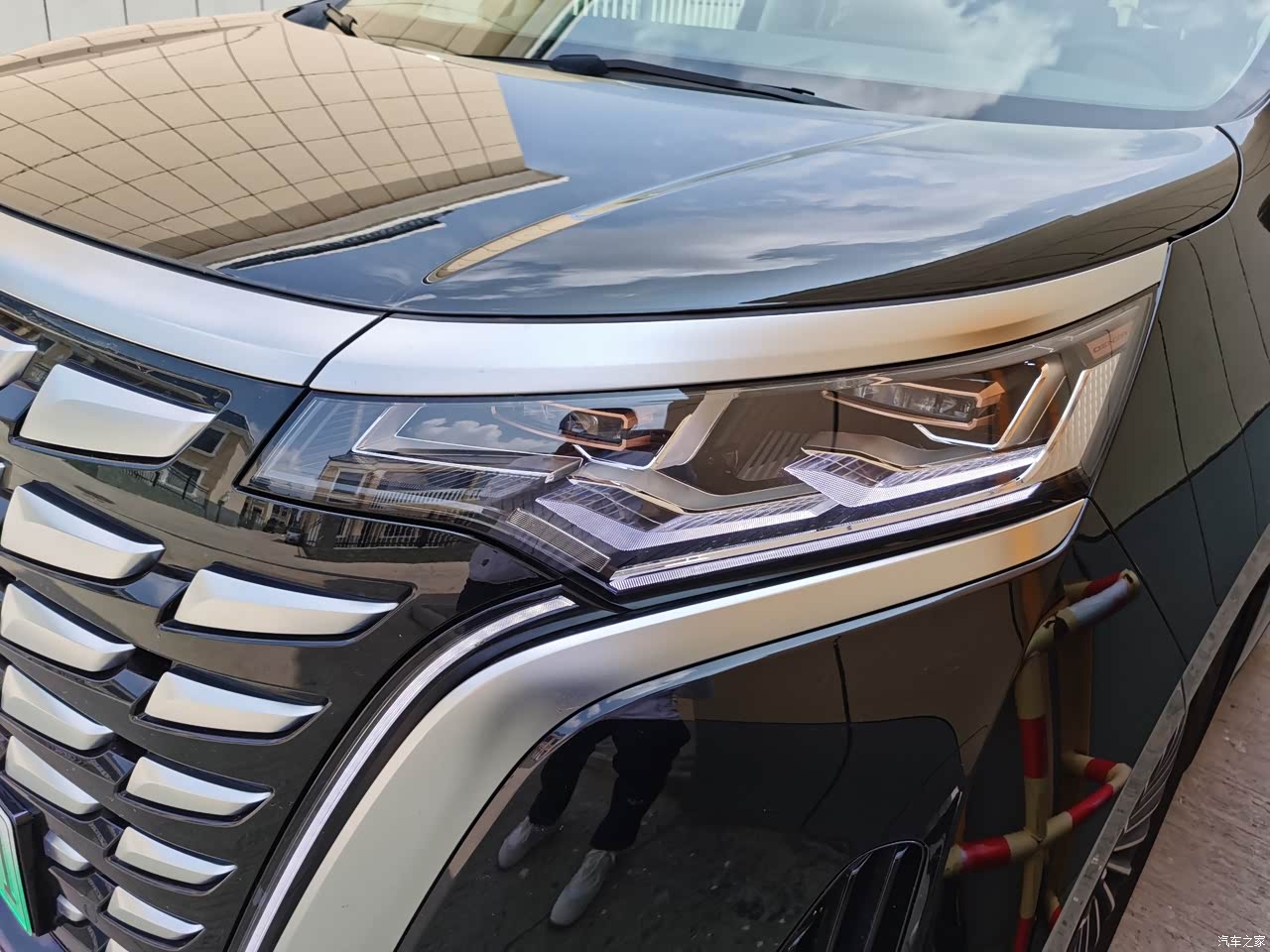 1. 前脸气场拉满,商务范儿十足 - 大尺寸镀铬中网+矩阵式LED大灯,白天看着像“钢铁侠面具”,晚上点亮后辨识度超高,接客户或者商务场合绝对不掉价。 - 车身线条方正,侧面看像“陆地游艇”,比GL8、赛那这些传统MPV更显高级。 2. 贯穿式尾灯+发光LOGO,晚上贼拉风 - 解锁时灯光秀仪式感拉满,尤其是晚上,尾灯一亮,路人都会多看两眼,比老款更精致。 - 车标带发光效果,开出去朋友都说“你这车挺贵吧?”(其实性价比还行) 3. 电滑门+隐藏式门把手,科技感到位 - 双侧电滑门,钥匙遥控、脚踢感应都能开,手里拎东西时特别方便。 - 隐藏式门把手降低风阻,跑高速风噪小,但冬天结冰时得小心(别硬掰!)。 4. 轮毂造型帅,轮胎够宽 - 20寸大轮毂+米其林静音胎,看着比低配的18寸精神多了,跑起来稳,胎噪也不大。 这车外观属于“商务够用,家用也行”的类型,不像埃尔法那么张扬,适合喜欢大气风格、兼顾家用和商务的车主,要是追求运动或者个性,。