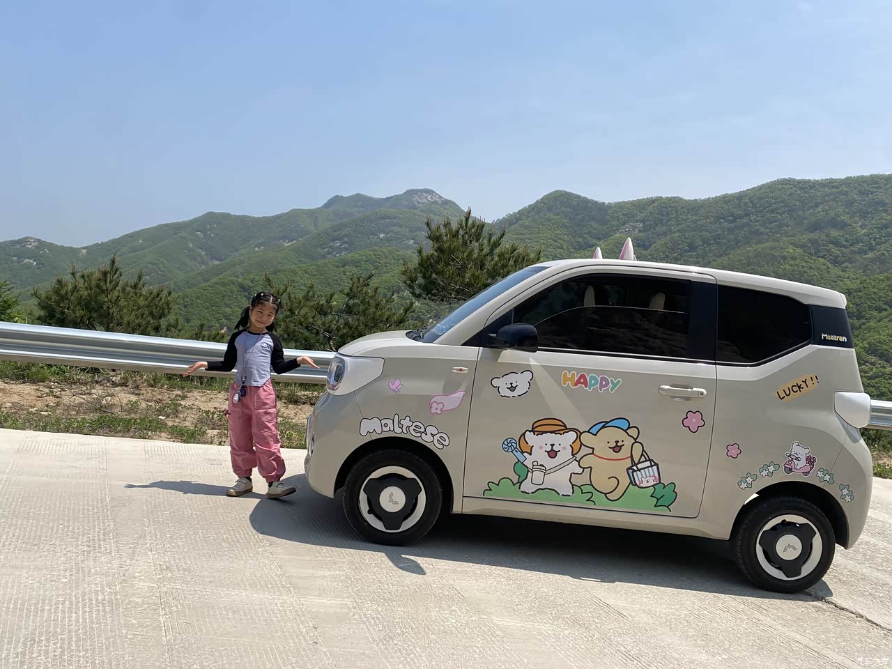 我女儿对这款“宝宝巴士”那时相当满意了,这款小车允许她随便装饰,她还邀请了她的好朋友们来参观和试坐。每次停在校门口都引来一帮小朋友的赞美声,她的朋友们说我们是坐在“小猫”肚子里呢!