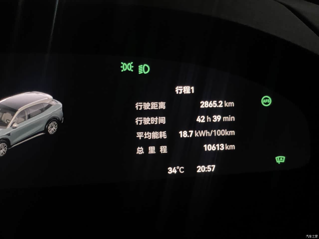 续航满意,高速充电站很多,前一周自驾跑了近三千公里,基本都是高速,没有焦虑,如果不是持续120的时速跑,500公里不是问题,但一般25%左右就准备充电了。遇见堵车什么的最不必慌张,电耗一下就下来了,电车最不怕堵车,也是用过之后才知道的。因为是20寸265的胎宽,比绝大多数都良心,如果希望增加续航可选标配19寸,群里19的朋友长期电耗只有13多,这样算下来能跑接近800公里了… 其实100度的电池算续航很容易。