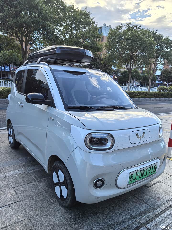 必须说,太好停车了,小巧的车身,新手也能轻松停车到位。 家里有一辆油车了,但还是决定再入一辆给我专门代步和接送娃的电车。2023年初就看过五菱mini,但当时考虑到不能快充,就放弃了。2023年底,终于看到五菱mini可以快充的消息,立马毫不犹豫直奔4s店。当时没有现货,只能试驾,半个月后通知到货后立马提车。到现在一年半时间,电费比油费省了太多,平时在家慢充,着急用车也能快充,日常用车轻松get! 我们平时经常带孩子出门露营,于是加装了车顶行李箱,露营用品全在行李箱上,经常来一场说走就走的旅行,妥妥的遛娃出行神器!