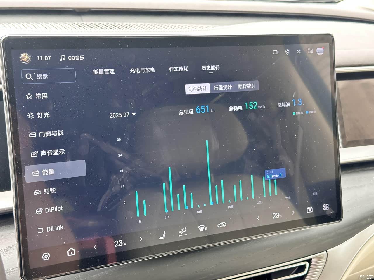 买车正好是孩子暑假期间,这两周也跑了不少路,续航其实没有太过注意,纯电续航的话,我通勤其实也没有太关注,因为我平常充电太方便了,单位有快充桩,家里楼底下也有快充站,不过实话说纯电模式下实测续航掉电不多,表显能耗控制得不错,动能回收系统在高架桥坡道上反向充电,省电不省电我不知道,但心里面还是感觉很惊喜的,混动模式跑高速综合油耗低至6.5L左右,不过我全程几乎是100迈跑的,可能也有关系,即使是这样,也比同价位燃油车省得多,夏日长途一点毛病都没有。