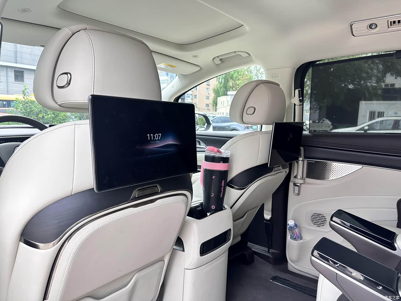 腾势D9空间表现堪称MPV中的标杆。前中后三排都宽敞,夏天出游时全家五口坐满也不拥挤,腿脚伸展自如。三排全开状态下,实测塞进了一个户外烧烤架和大号收纳箱,平常购物根本不用折叠第三排。二排小桌板有的时候也会成了我的临时办公区,笔记本一放就能处理工作。中控后侧的保温杯架很贴心,放两瓶冰镇饮料开车时纹丝不动。第三排的儿童座椅接口设计巧妙,装孩子安全座椅省力不少。电动滑门底下的暗格超实用,雨季时雨伞直接丢进去,车内干干净净。