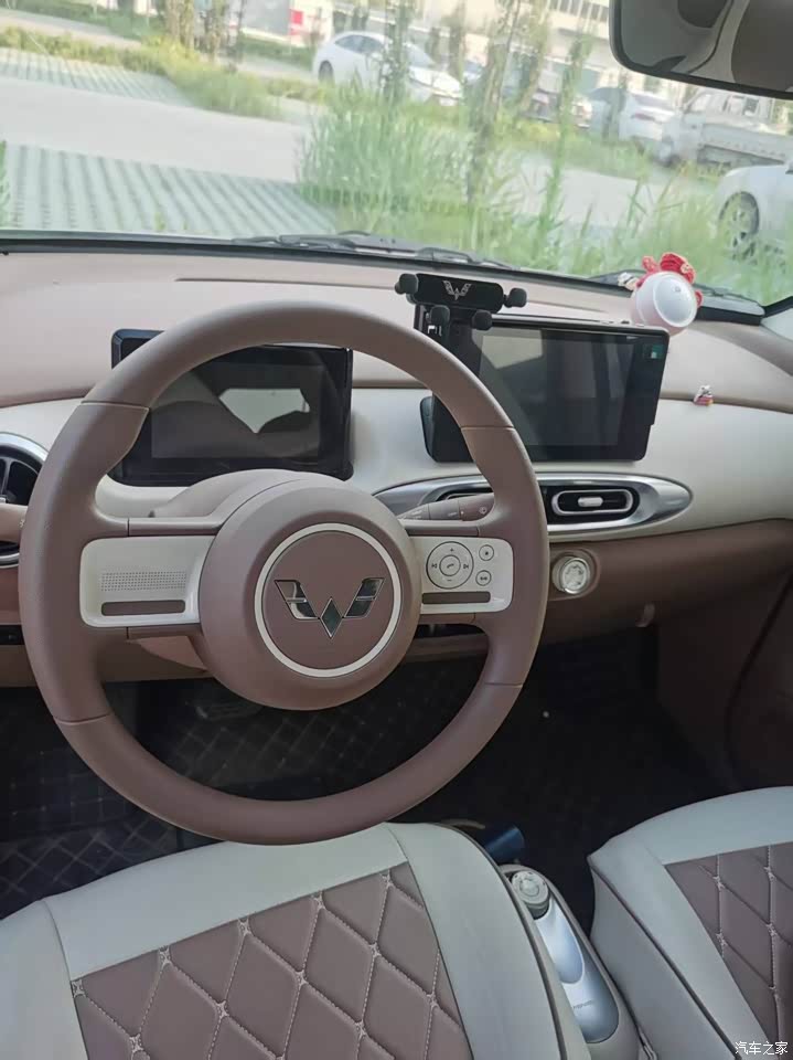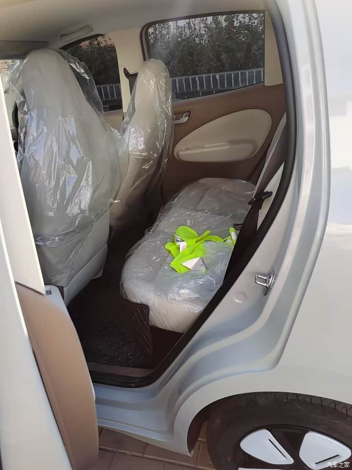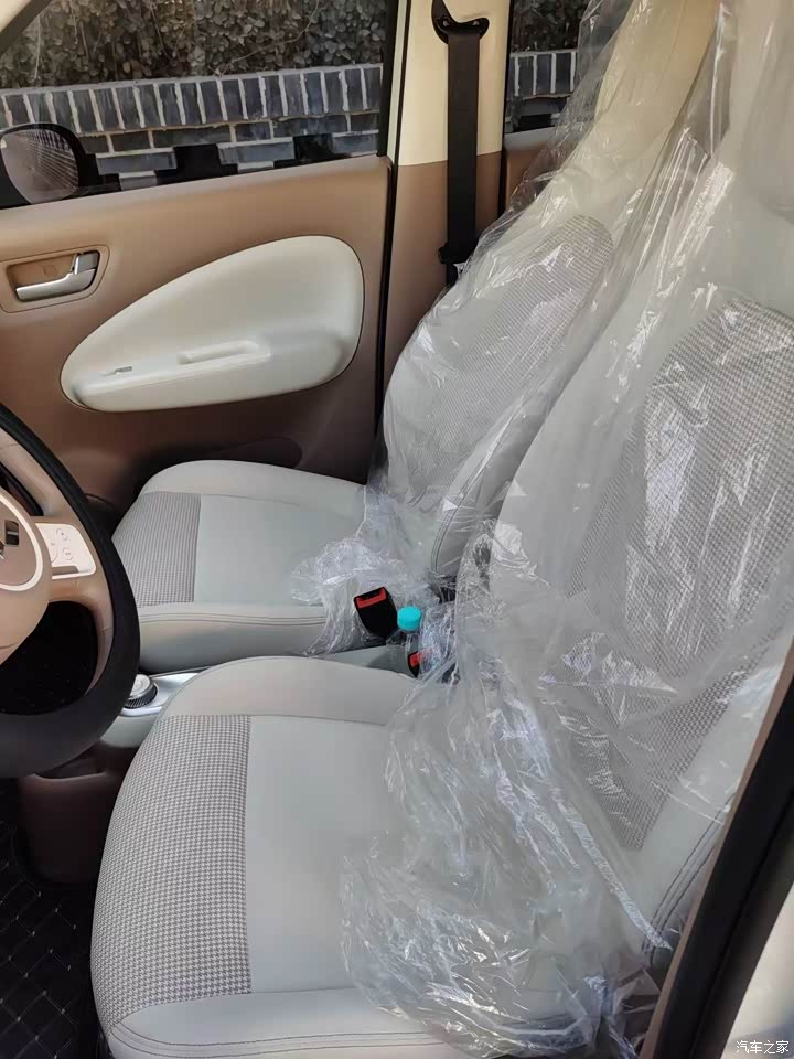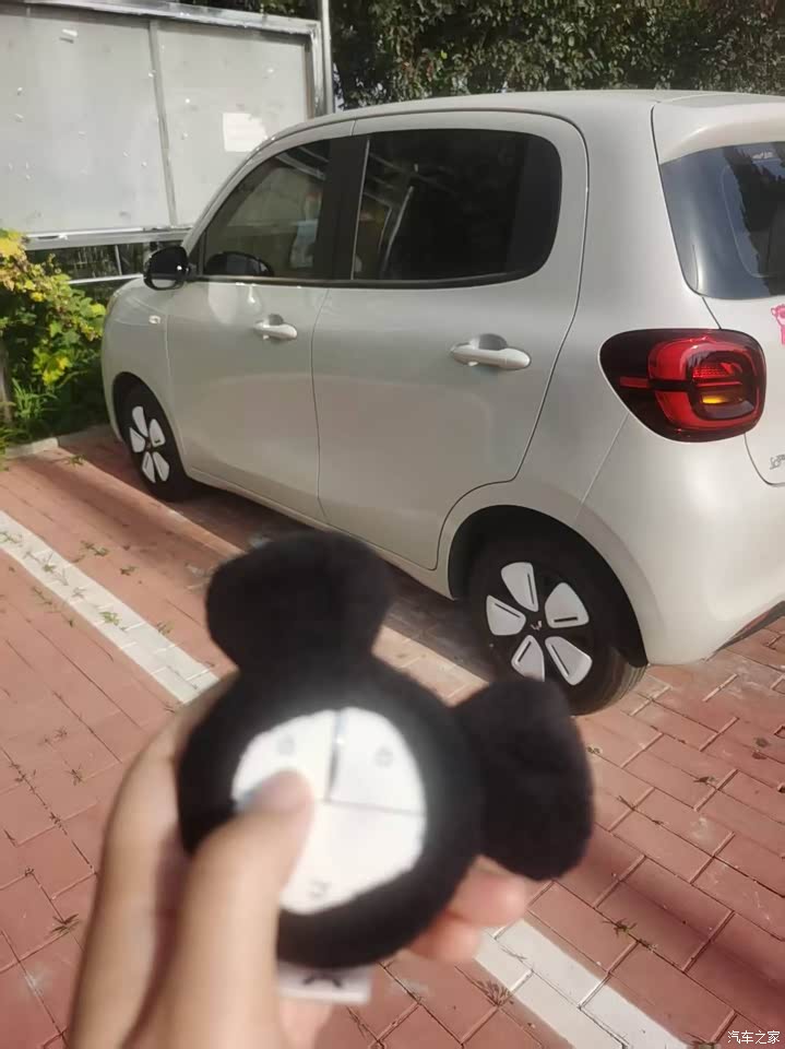 外观呆萌可爱,是我喜欢的样子,前脸微笑大眼睛,乍一看有点像她姐五菱缤果,颜色有3个,奶咖,蓝色,绿色,我选的是奶咖