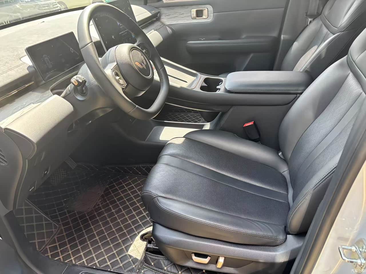 纯黑的内饰更简约高级,配上15.6的大屏很豪气,还有皮质方向盘与皮座椅的加持更霸气十足。