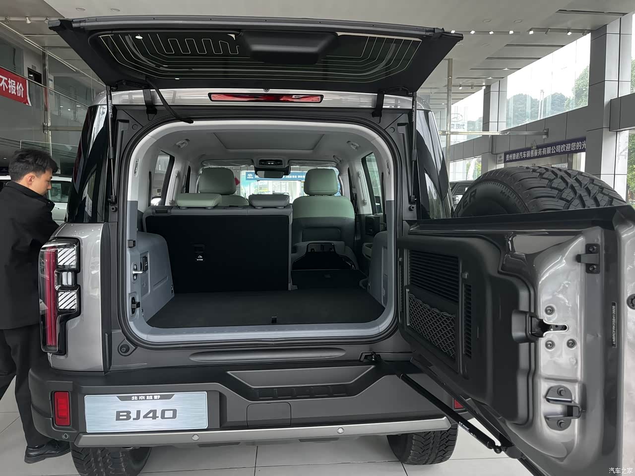 空间很不错 坐进BJ40,前后排的头部空间都很大,完全没有压抑感,这也是方盒子造型的优势。前排座椅宽大舒适,包裹性不错,调整好坐姿后视野开阔,有一种高高在上的感觉。腿部空间对于这个尺寸来说算是合格,中等身材乘客不会觉得局促,后排中央地台隆起几乎纯平,但和所有车一样,中间靠背靠上去有些顶,中间乘客长途乘坐会有些不适。后备箱空间进伸不算长,但方正且高度可观,常规状态下容积满足日常需求,放倒后排座椅后能形成近乎纯平进伸1.7至1.9米长的大空间,装载能力出色,露营装备、越野工具不在话下。车门上的储物格设计实用,但深度足够。中央扶手空间很深,一只手握拳伸下去,直接到肘关节。