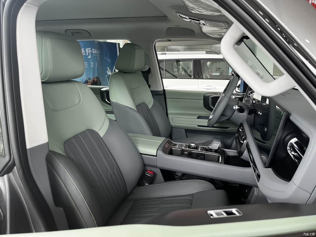 驾驶感受沉稳 铺装路面:2.0T柴油发动机163马力,400牛·米低扭极其充沛,起步、爬坡很有底气,8AT变速箱换挡平顺,逻辑清晰,更注重燃油经济性。底盘调校明显偏向硬朗,过沟坎和减速带时传递到车内的振动比较直接,路感清晰,可选择舒适模式,底盘感受就会变得柔和一些。高速行驶和弯道支撑性很好,车身姿态稳健。方向盘存在一定虚位,指向性不算精准,这是越野车的普遍特性。NVH控制是弱项,柴油机的噪音,尤其急加速时和方正造型所致风噪较为明显,好在配备了主动降噪,所以噪音尚在可接受范围内。由于试驾场地限制,没有走非铺装路面,但从整车非承载车身、四驱、“三把锁”以及高离地间隙和优秀的接近角/离去角等账面数据来看,它应能轻松征服大部分障碍。