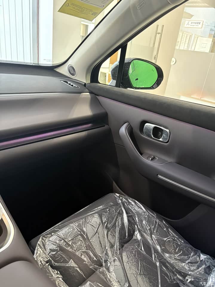 真皮座椅看起来上档次,坐感柔软舒适,选的内饰也是紫色,耐看。搭配上氛围灯…一整个喜欢住了!有点不好的就是部分地方用的材料容易脏不好清理!