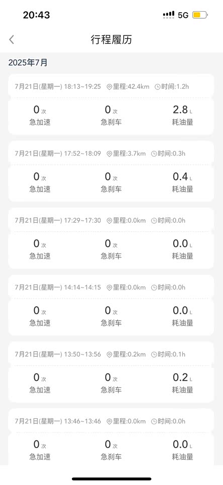 42.4km耗油2.8L,计算下来合百公里6.6L,这段路大多数是开的环线,不算堵车,也有很多红绿灯,整体油耗很满意!