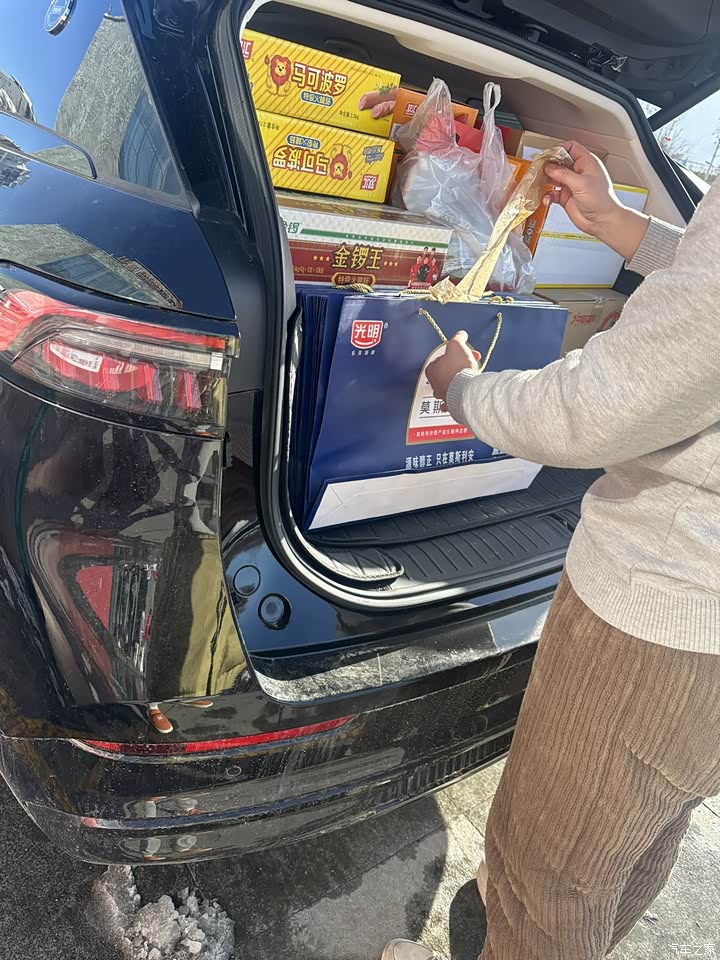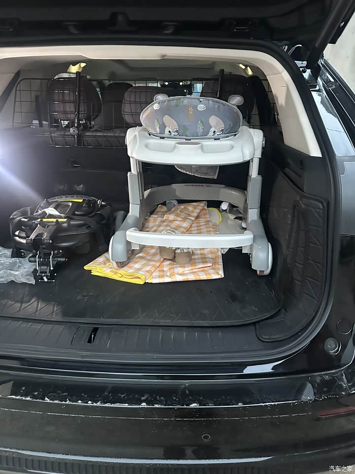 空间真的足够大,平时出行宝宝的各种车都可以放到后备箱,尤其我家有养宠物,放到后备箱里也不觉得委屈,过年过节的节礼也都可以完全放得下