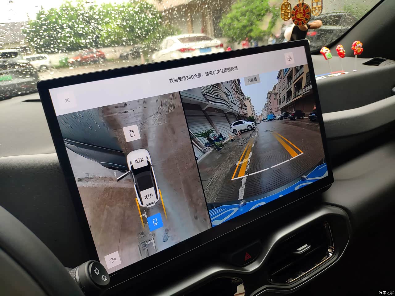 全景影像很好用加上屏幕大大的,看着它倒车就很简单了。语音用的也比较多,刚开始有些功能不熟悉在哪的,都是语音喊一声就会自动出来了,识别率还是很高的。