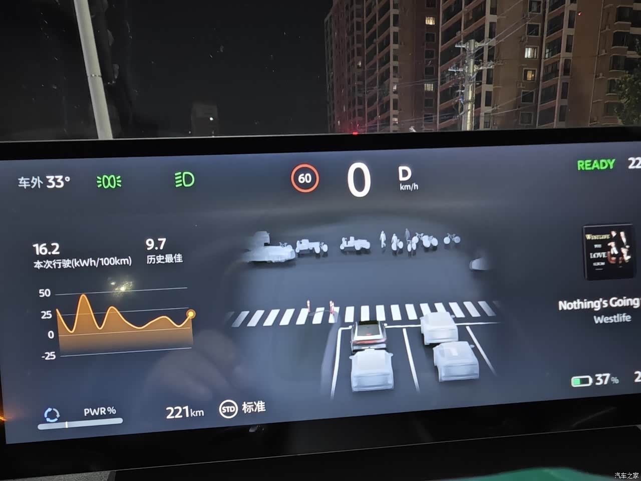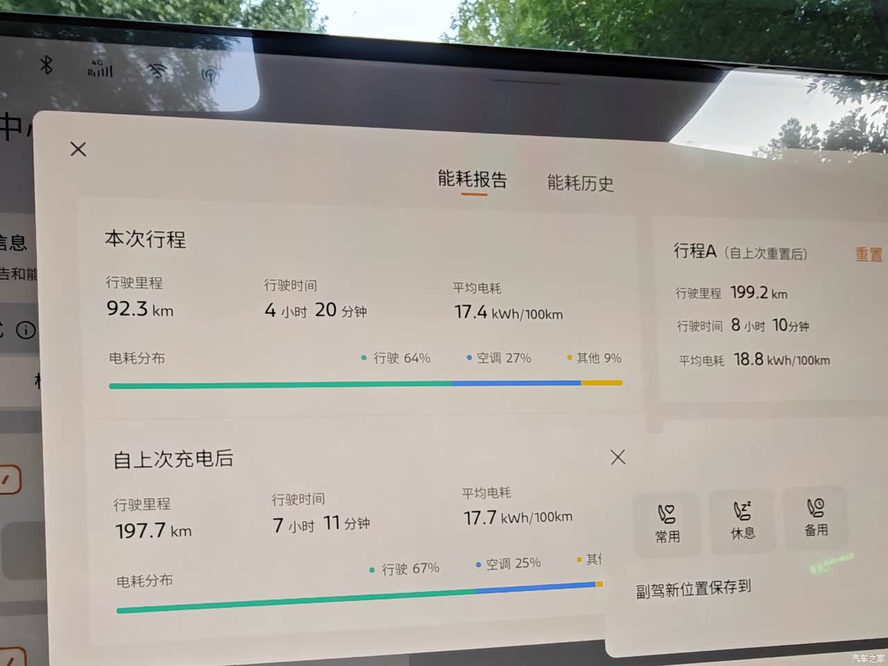 90%的电出发,行驶221公里还剩37%的电,或许因为停车没关空调(车上有人),空调的电耗占比差不多25%以上,这应该是耗电较快的原因。实际达成不太满意,继续观察