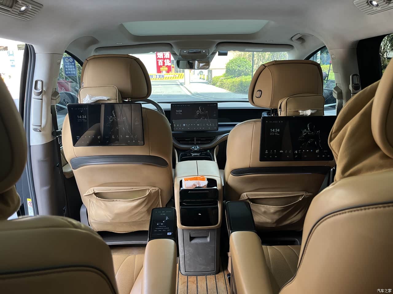 坐进去就俩字:敞亮! 前排驾驶位不管是腿还是胳膊,都能舒舒服服伸开,一点不憋屈。第二排更别说了,那航空座椅往后调调,腿托一放,整个人能半躺着,旁边再留着过道,来回走也方便。 第三排也不是摆设,膝盖离前面还有点空当,头顶也不顶头,坐仨人也不挤得慌。 车里那些小格子也多,手机、水杯、孩子的零食啥的,随手就能塞进去,不乱糟。后备箱更不用愁,全家出去玩,行李箱、婴儿车、露营装备一股脑往里扔,都能装下,实在不够用,第三排座椅还能调调,空间能再腾点出来。 反正不管是一家子满员出行,还是拉点东西,这空间都能扛住,实用得很。