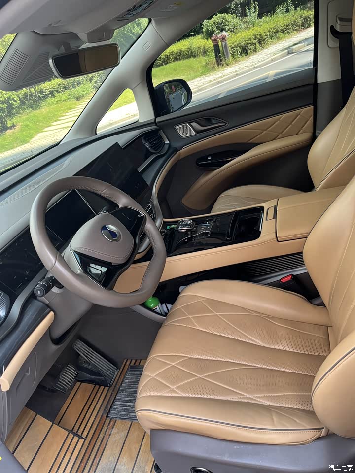 腾势D9的内饰看着就舒坦。能摸到的地方大多是软乎乎的,不硌得慌。几块屏幕连一块儿,有科技感还不乱,操作也顺溜。座椅包裹性好,尤其第二排,调个角度、伸个腿托,跟陷沙发里似的。储物地方也多,门板、中控、第三排都有小格子,放东西方便。整体大气不花哨,家用商用都合适。