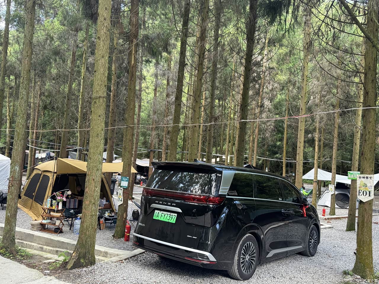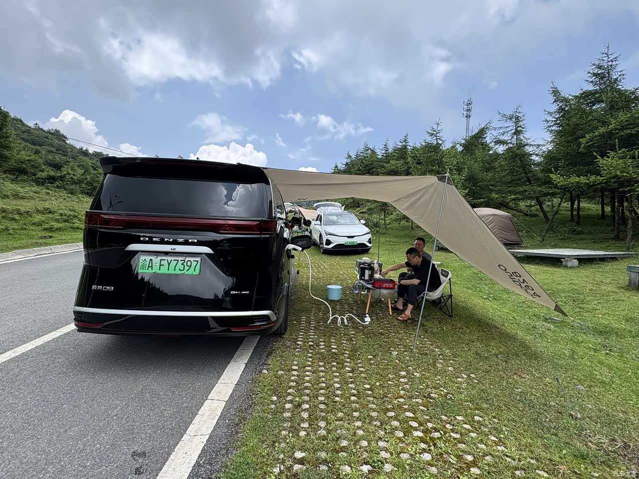 续航和能耗也是我非常关注的点,腾势D9在这方面的表现也让我十分满意。它的纯电续航里程足以满足我日常的市区通勤需求,每天上下班使用纯电模式,不仅安静,而且成本极低,我在自家停车库安装了电桩,预约凌晨零点开始充电,早上7点前就满电,享受0.36元的低谷电价,每公里的花费也就一毛钱。遇到长途出行时,混动模式的油耗也不高,综合下来百公里油耗大约在7 - 8L左右,对于这样一台中大型MPV来说,这样的能耗表现相当出色,完全没有续航焦虑。而且,它还支持对外放电功能,功率高达6kW,后备箱还有220V交流插座(2.2kW) 。周末和家人一起去露营时,接上各种电器设备,煮咖啡、烤肉、播放音乐,让户外生活变得更加丰富多彩。完美解决好多避暑露营地不让用火的烦恼,也不用再带很多燃气罐,露营更环保、更安全。