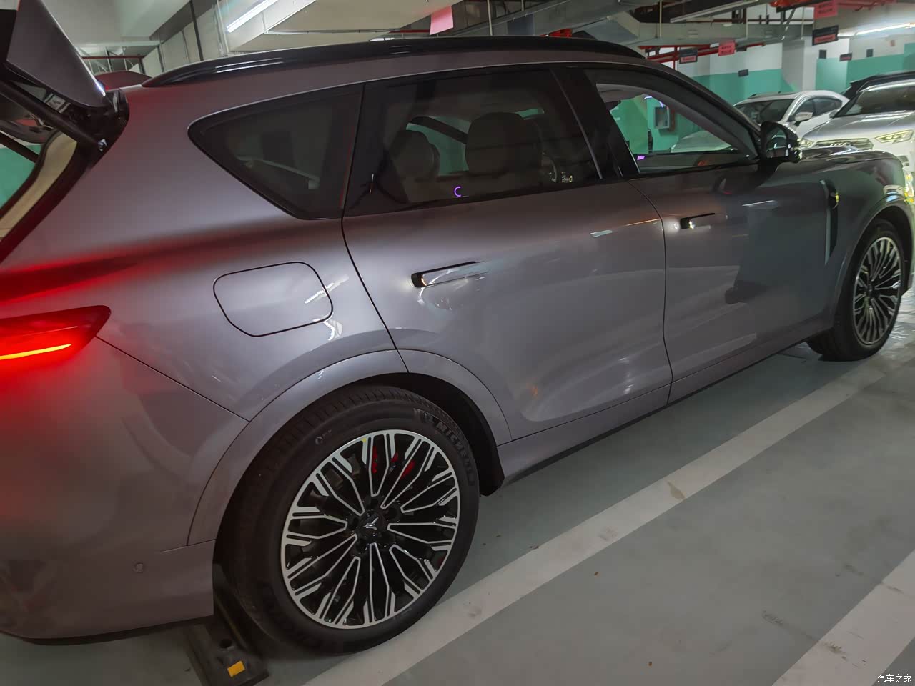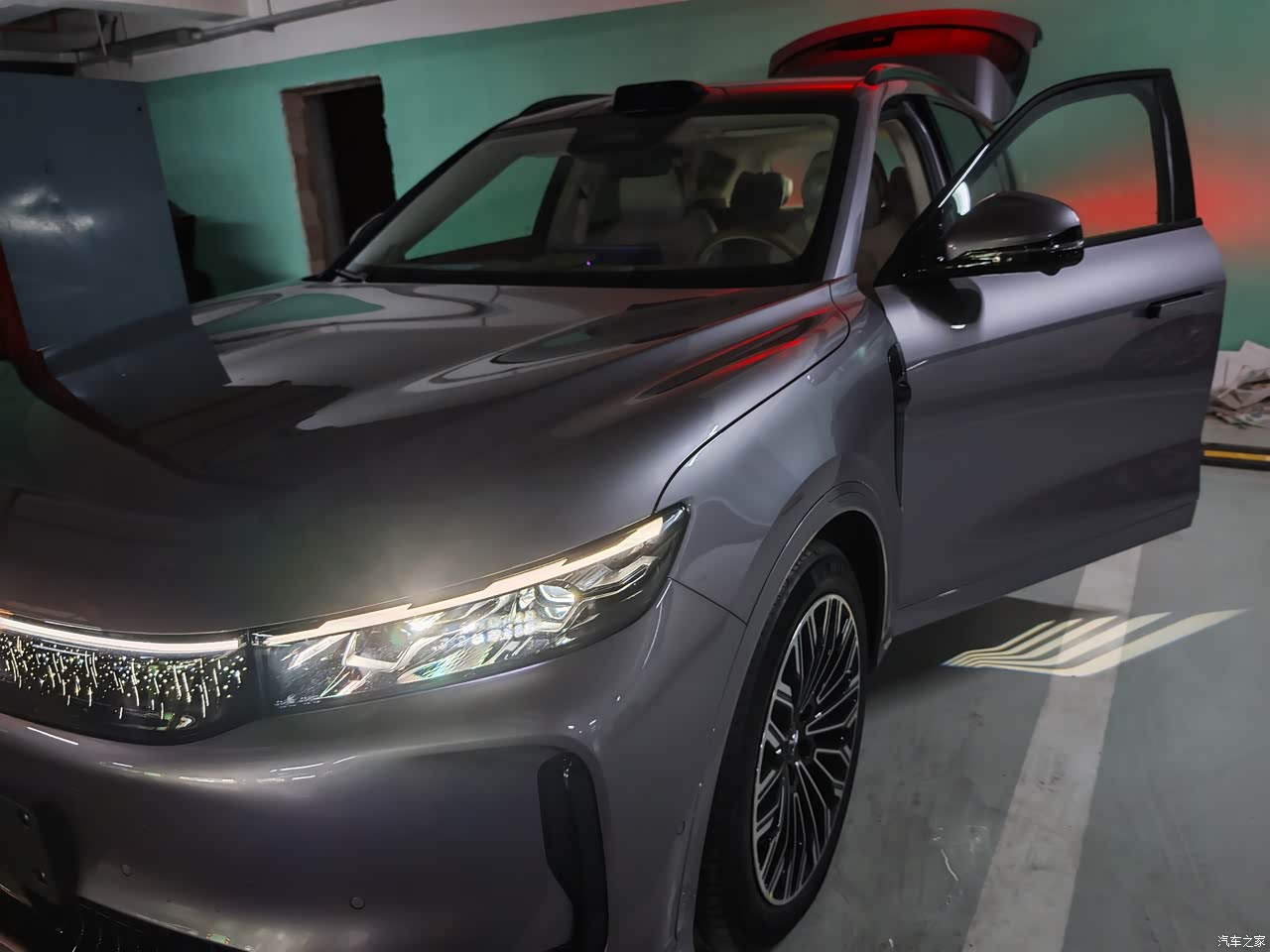 岚图FREE+ 四驱乾崑版的外观设计我觉得挺对味儿的。整体造型很有辨识度,前脸的设计很独特,特别是城市星空发光的格栅和贯穿式的灯带,加上岚图标志性的前脸元素,老远一看,就知道是岚图的车。车身线条流畅又硬朗,溜背的造型让它多了几分运动感,不会像有些 SUV 那样显得笨笨的。大尺寸的轮毂也很加分,造型很精致,转起来的时候,视觉效果特别好。而且琉璃紫的车漆在阳光下质感真的绝了,低调中又透着高级感,开出去很帅。