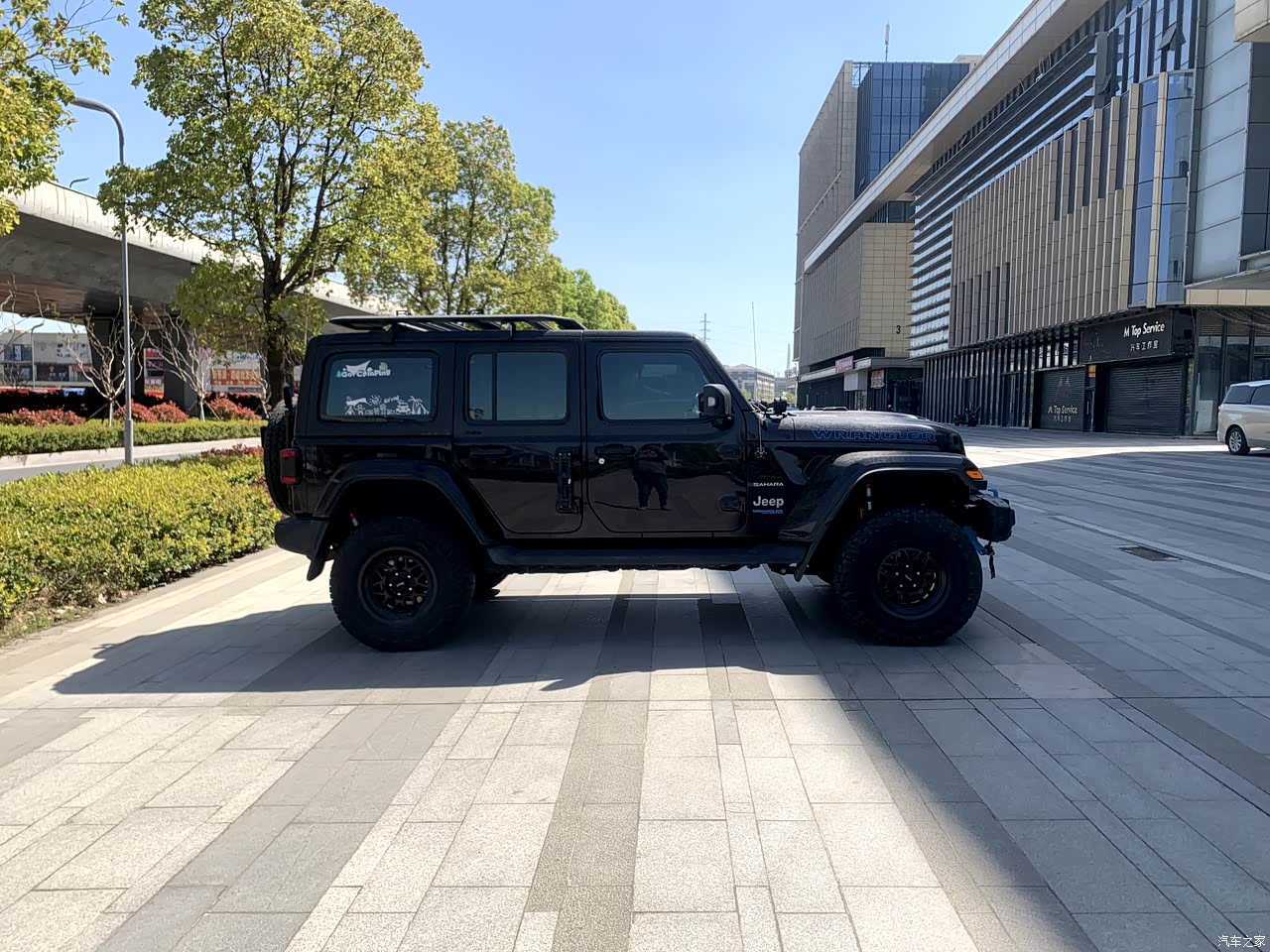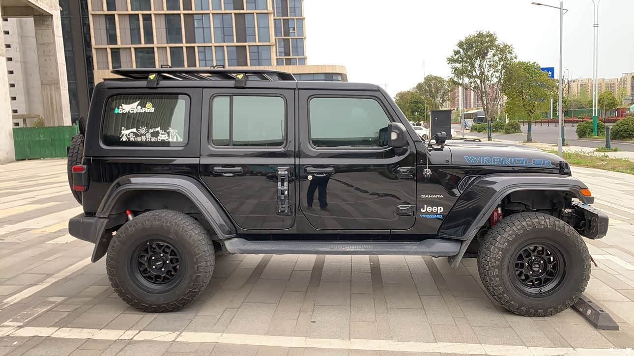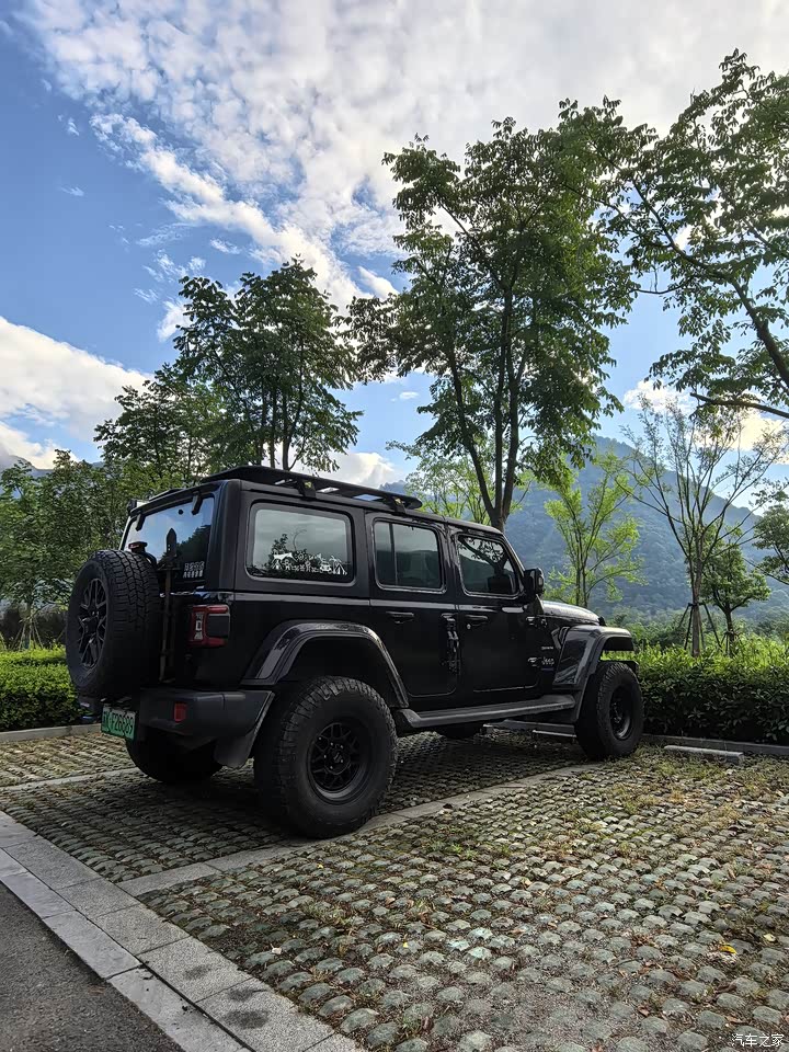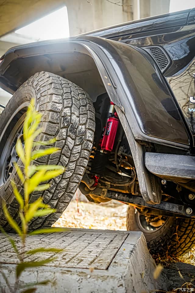 原装轮胎轮毂略小,需要改装,牧马人不改不如退下海,改装空间很大。