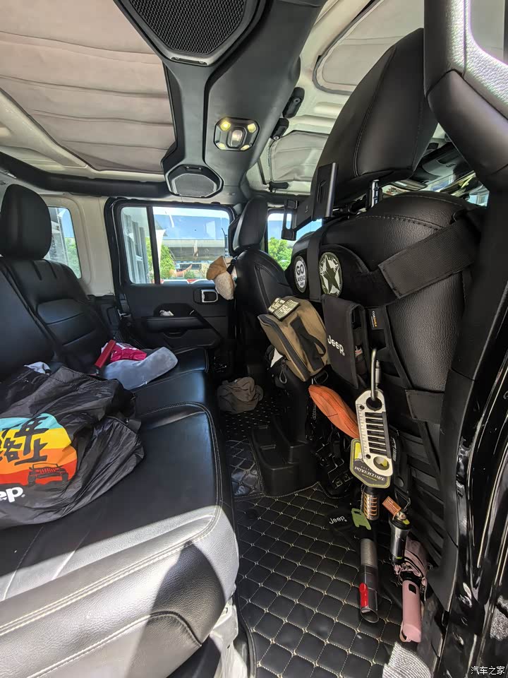 空间是完全够用的,后备箱塞满行李和露营的一些装备后,还能放的下家里的狗狗。后排座椅对比汽油版牧马人要更加舒适,座椅的长度增加了,主要后排座椅下有大电池。缺点吧,就是后排座椅不能完全放平。