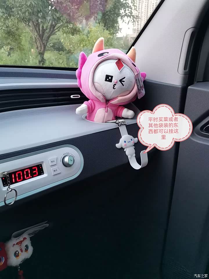 车内大部分内饰采用塑料材质 质感相对较差,而且容易产生异响 不过丝毫不影响我的驾驶感受 后面自己陆陆续续配置了些可爱的小内饰 小车还是倍感温馨的