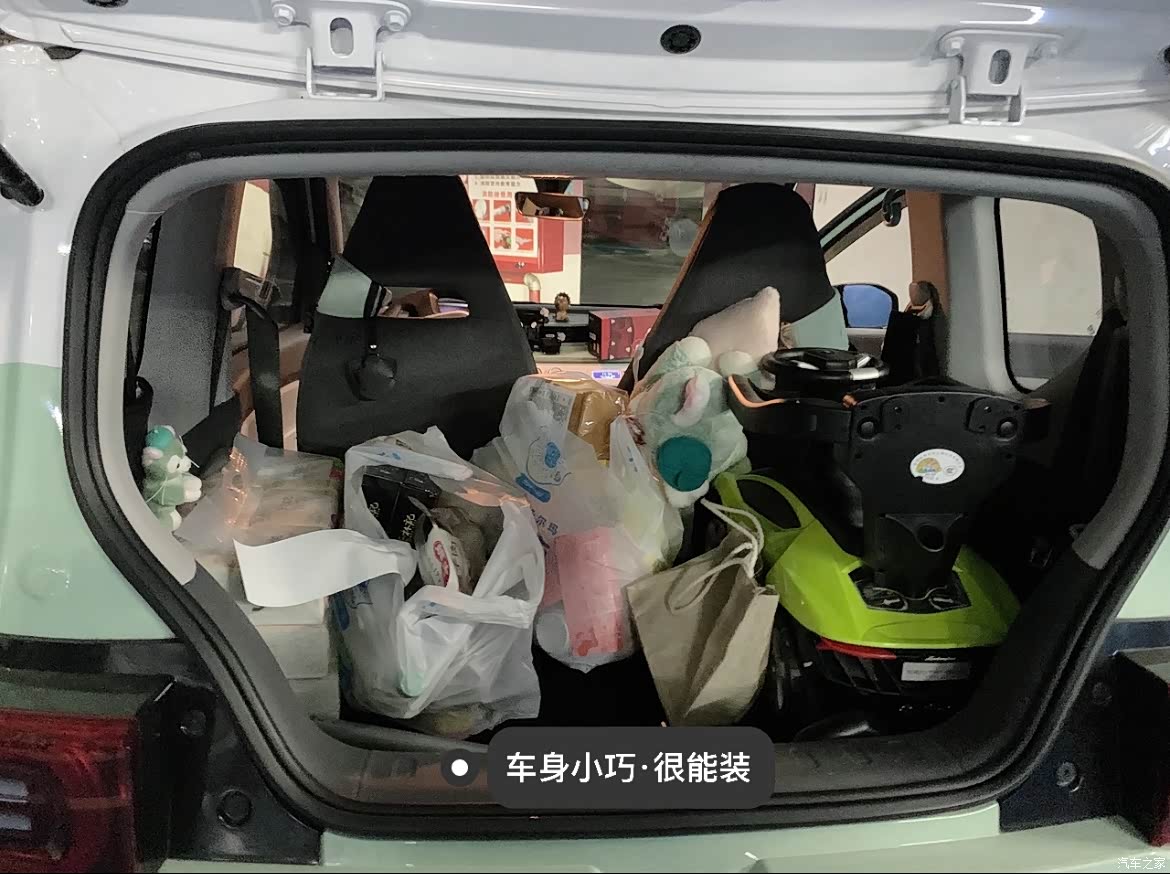 颜值长在我的审美上,这颜色我是真喜欢,看着就舒服。操作也简单,我这种不太懂车的,上手很快。 车身小就是好,倒车有影像,我这种新手也不怕。街头巷尾的停车场,随便找个空就能停,车位紧张的时候也不愁,横停竖停都轻松。 不管大太阳、刮风还是下雨,开它代步太香了。别说什么就是带壳的电车,谁用谁知道有多方便。 后排能放两个儿童安全座椅,也能放倒当后备箱放行李,空间不小,婴儿车之类的随便塞,完全够用。 二代是真听劝,加了安全气囊和倒车影像,对我这种停车困难的人来说,太贴心了。 智能语音跟小爱同学似的,喊“你好,mini”就能唤醒,点歌啥的很方便,我儿子特喜欢玩这个。